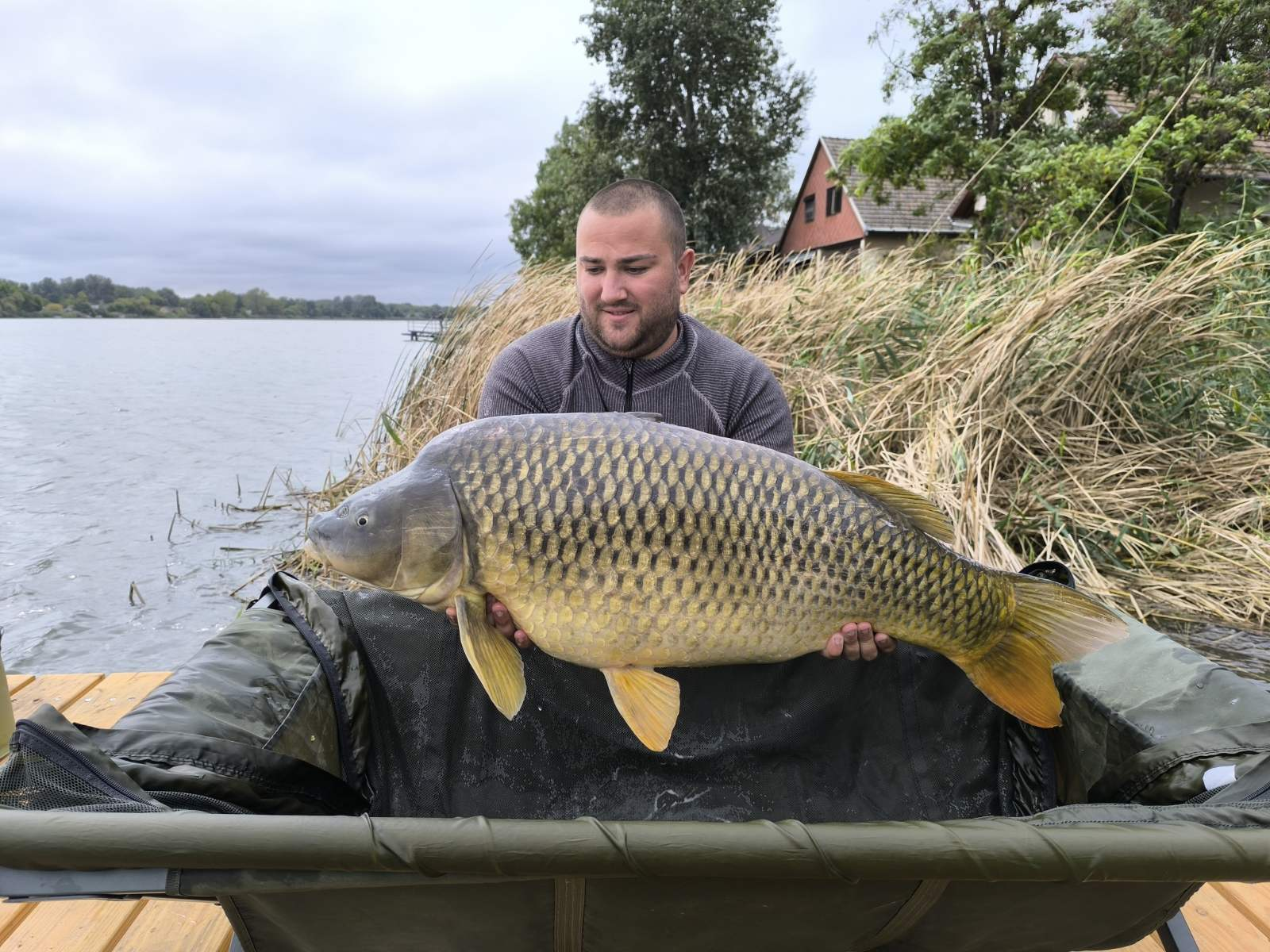 3 m-es 2,75 lbs bot, 0,35-ös monofil zsinór, 2-es horog. Bojli csali és etetés. Borús, szeles idő, 10 perces fárasztás partról.