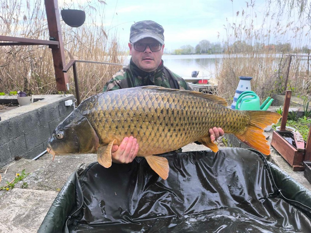 3 m-es 2,75 lbs bot, 0.30-as monofil zsinór, 4-es horog. Bojli csali, etetés tigrismogyoróval és kukoricával. Enyhe déli szél, 15 perces fárasztás csónakból.