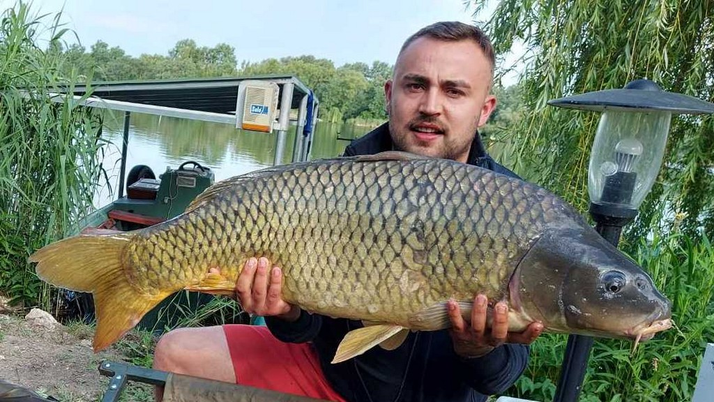 3,6 m-es 3 lbs bot, 0.20-as monofil zsinór, 4-es horog. Szélcsend, 30 perces fárasztás csónakból.