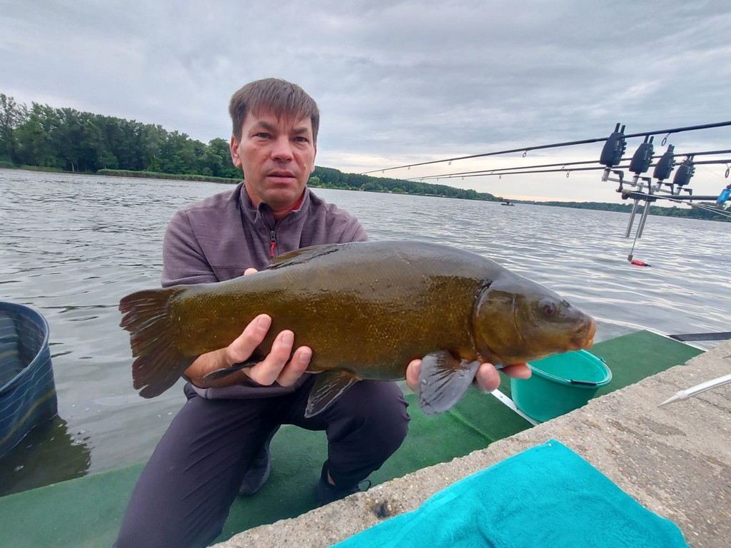 Fenekezés, 3,6 m-es bot, 0.30-as monofil zsinór, 6-os horog. Szeles idő, 5 perces fárasztás.
