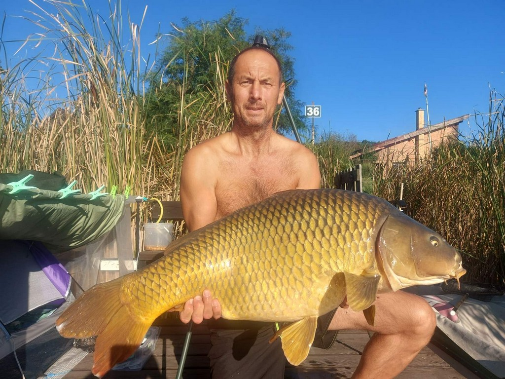 2,7 m-es 3,0 lbs bot, 0.30-as monofil zsinór, 4-es horog. Bojli csali és etetés. Derült idő, szélcsend, kb. 40 perces fárasztás partról.