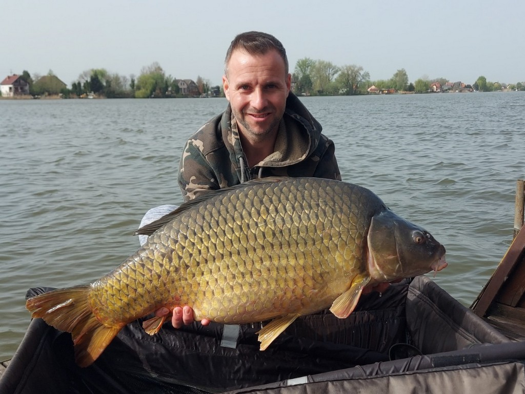 0.30-as monofil zsinór, 4-es horog, bojli csali és etetés. Szeles idő, 30 perces fárasztás partról.