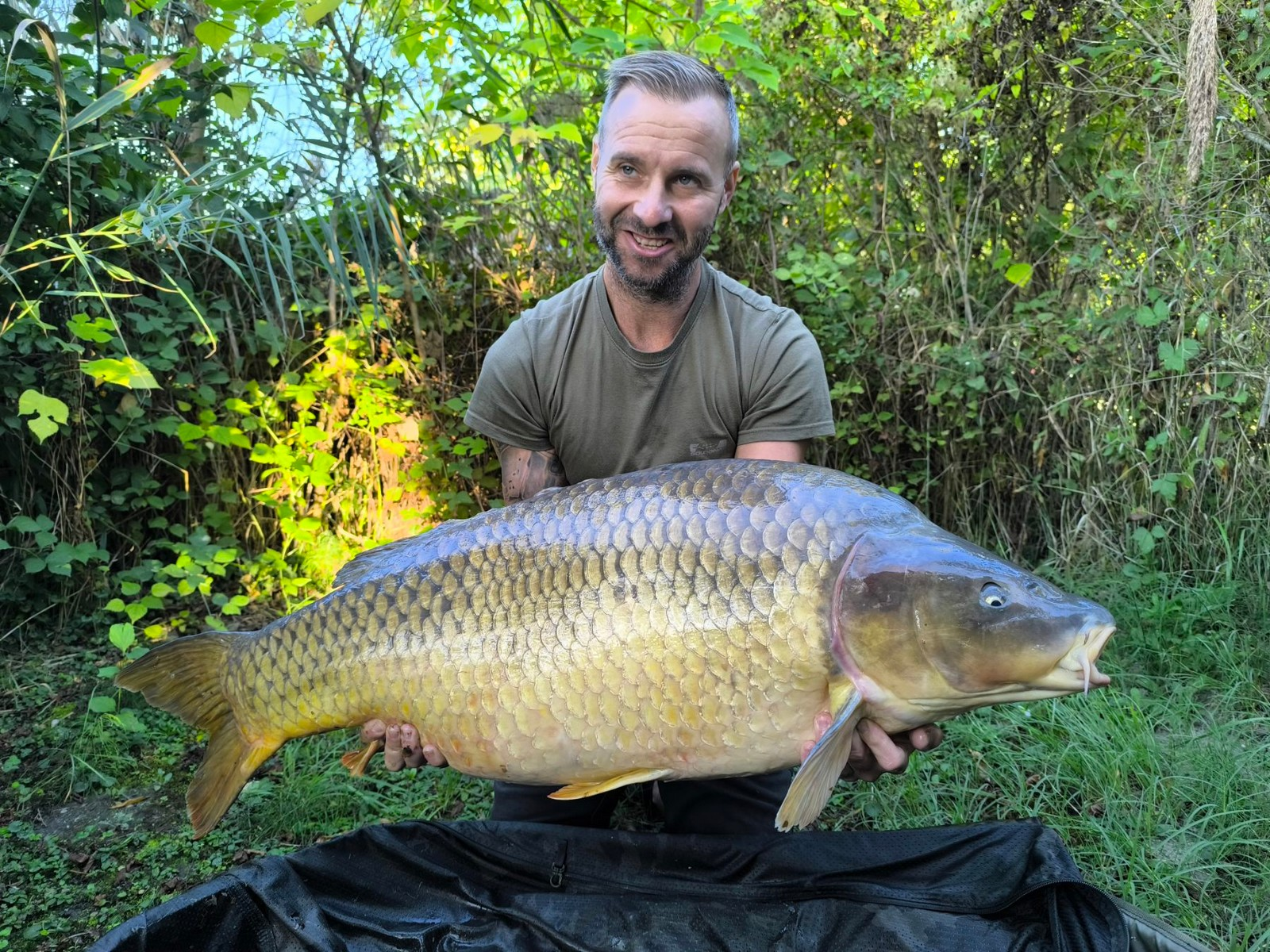 3,9 m-es 4,0 lbs bot, 0,33-as monofil zsinór, 4-es horog. Bojli csali és etetés. Derült idő, szélcsend, 25 perces fárasztás partról.