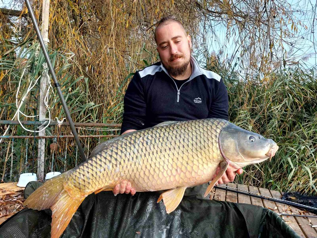 3 m-es 3,0 lbs bot, 0.30-as monofil zsinór, 6-os horog. Bojli csali és etetés. Hideg idő, szélcsend, 10 perces fárasztás partról.
