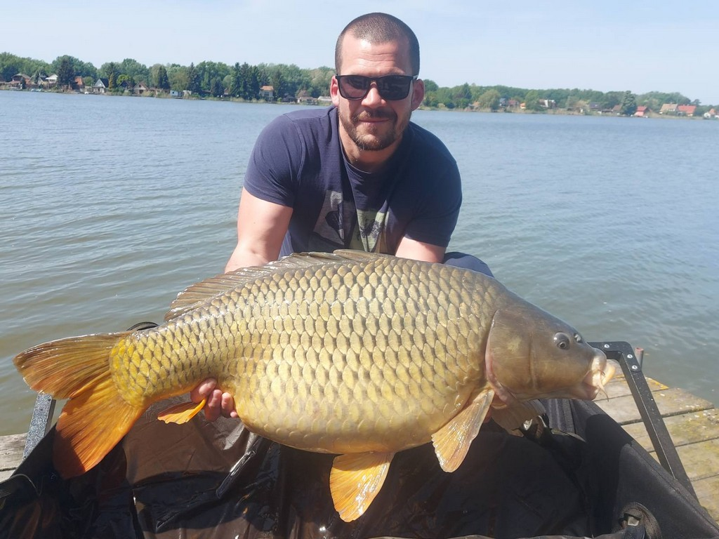 0.28-as monofil zsinór, 6-os horog. Bojli csali és etetés. Napos idő, 15 perces fárasztás partról.