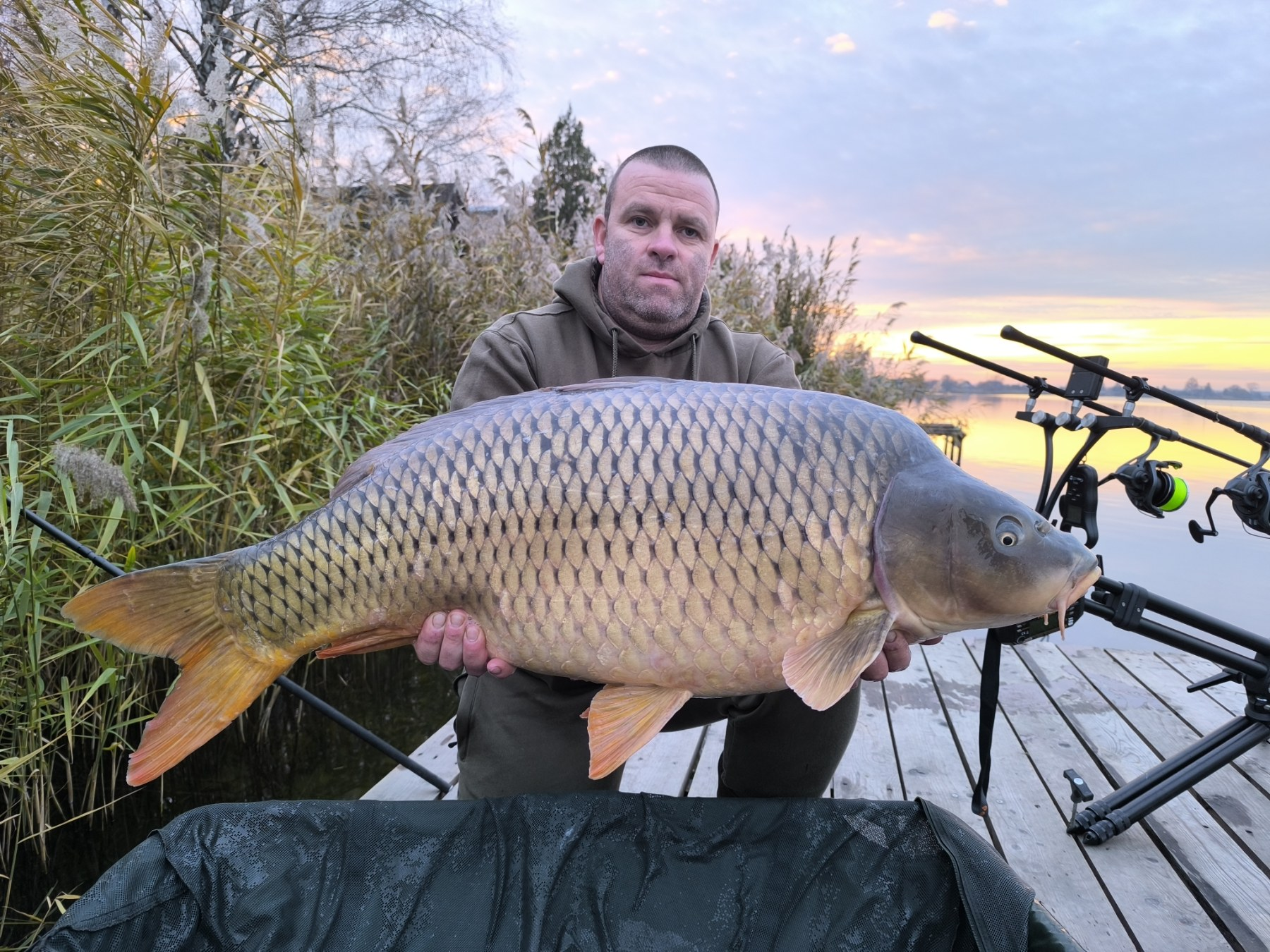 3,6 m-es 3,0 lbs bot, 4-es horog. Bojli csali és etetés. Hűvös idő, parti fárasztás.