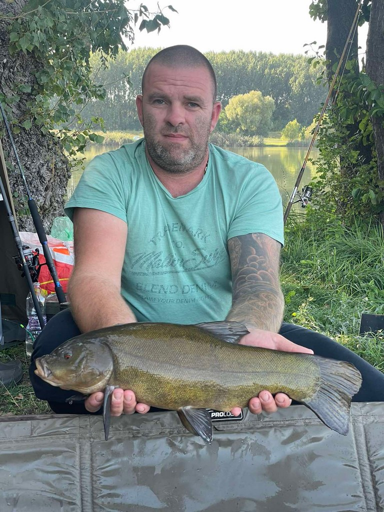 3,6 m-es 3,25 lbs bot, 0,35-ös monofil zsinór, 4-es horog. Tigrismogyoró csali és etetés. Napos, meleg idő, szélcsend, 20 perces fárasztás partról.