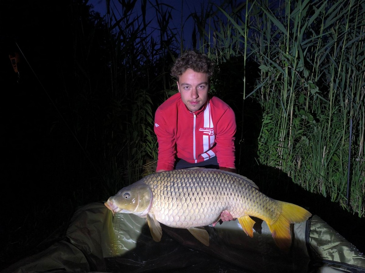 3,6 m-es bot, 0.30-as monofil zsinór, 2-es horog. Bojli csali és etetés. Esős, szeles idő, 15 perces fárasztás.