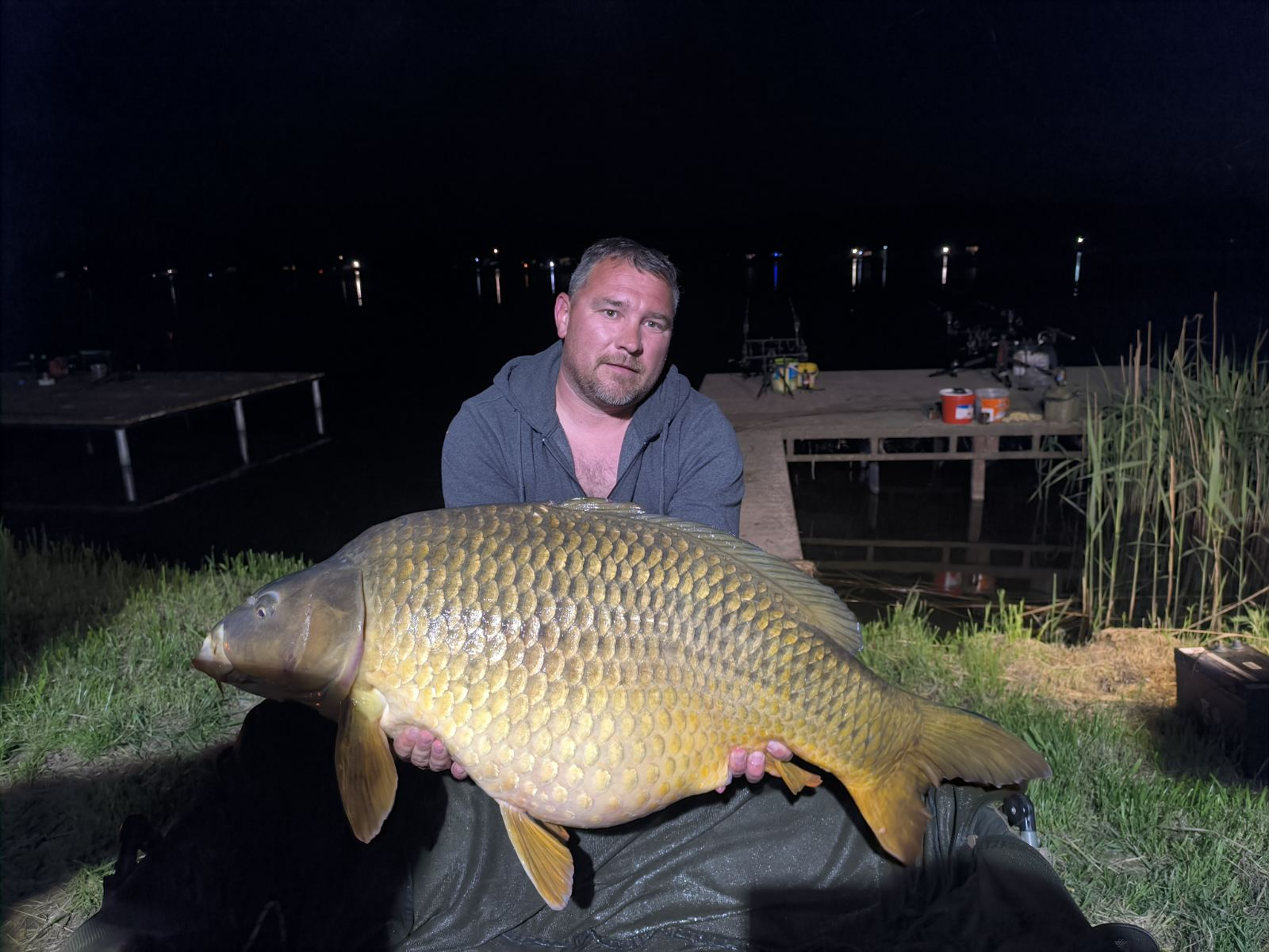 3,6 m-es 3,0 lbs bot, 0.34-es monofil zsinór, 4-es horog. Bojli csali és etetés. Derült idő, gyenge szél, kb. 1,5 órás fárasztás partról.