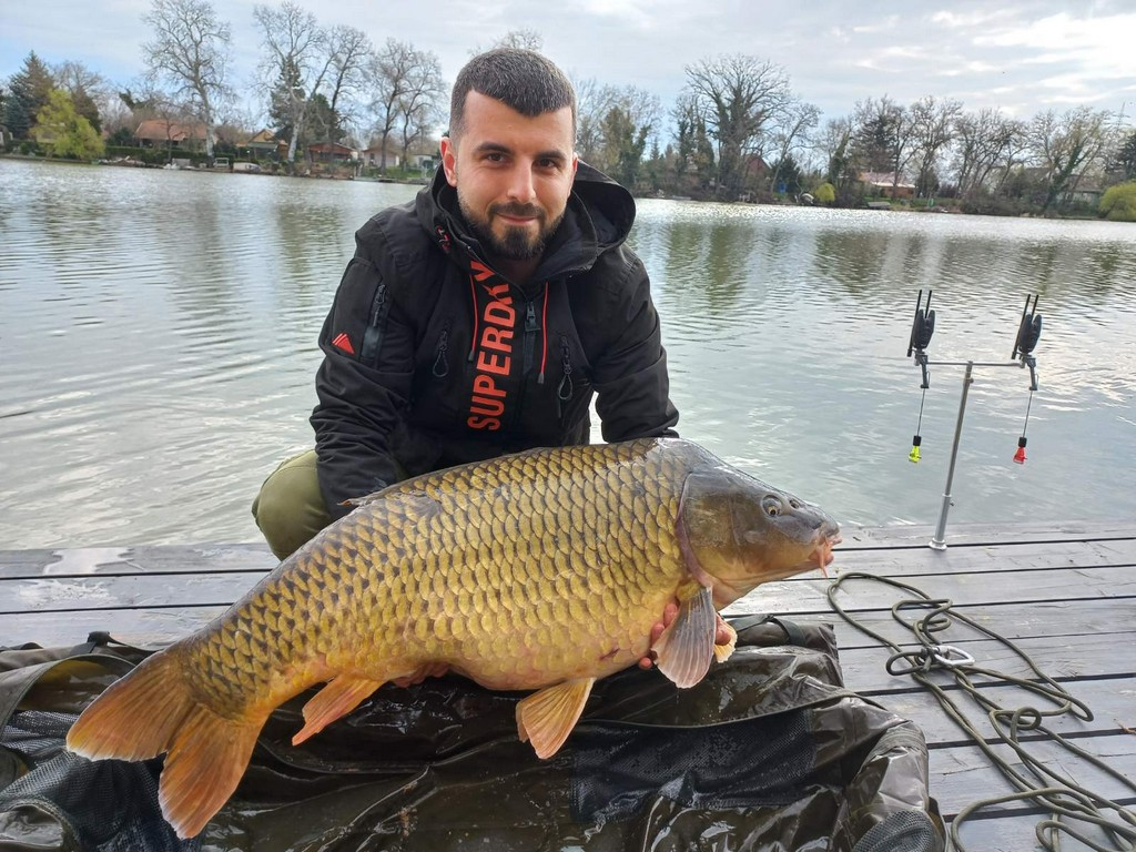 3 m-es 2,25 lbs bot, 0.30-as monofil zsinór, 8-as horog. Bojli csali és etetés. Borult idő, gyenge szél.