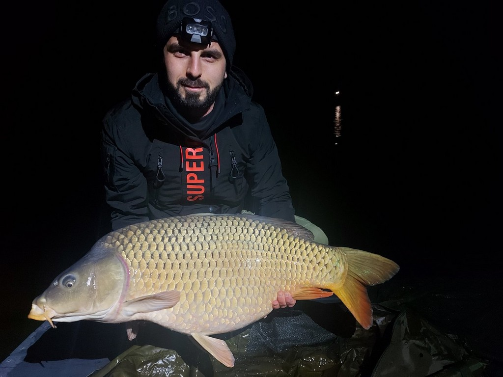 3 m-es 3,0 lbs bot, 0,35-ös monofil zsinór, 6-os horog. Bojli csali és etetés. Hideg idő, szélcsend, 15 perces fárasztás csónakból.