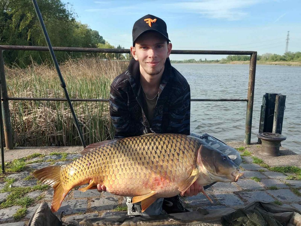 3,6 m-es 3,0 lbs bot, 0.35-ös monofil zsinór, 4-es horog. Bojli csali és etetés. Derült, szeles idő, 20 perces fárasztás partról.