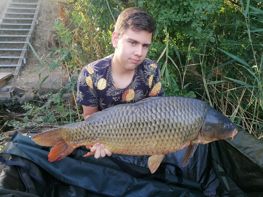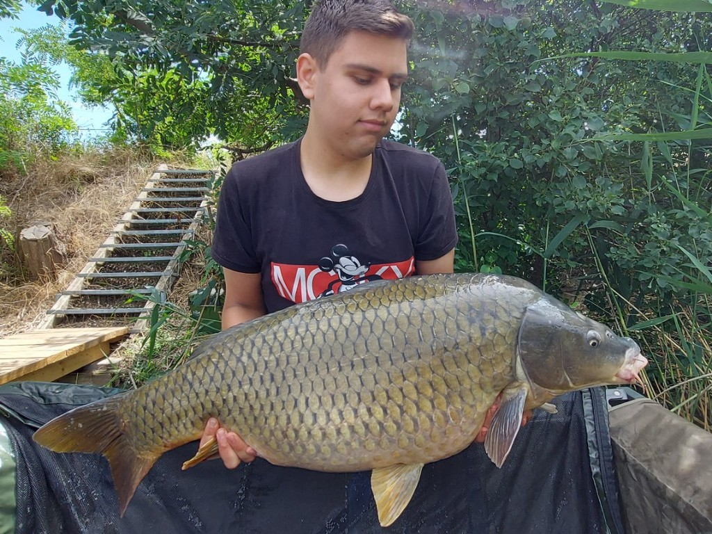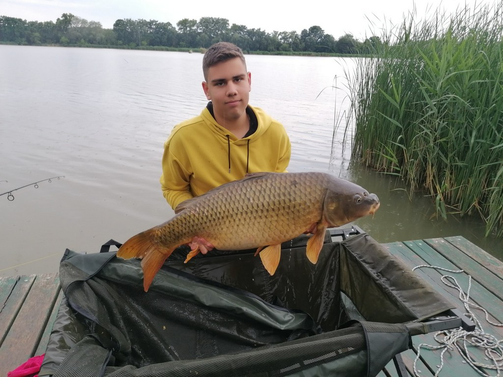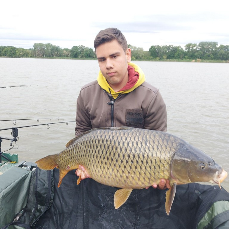 3,6 m-es 3,5 lbs bot, 0,30-as monofil zsinór, 4-es horog. Bojli csali és etetés. Szélcsend, enyhén felhős idő, 10 perces fárasztás partról.