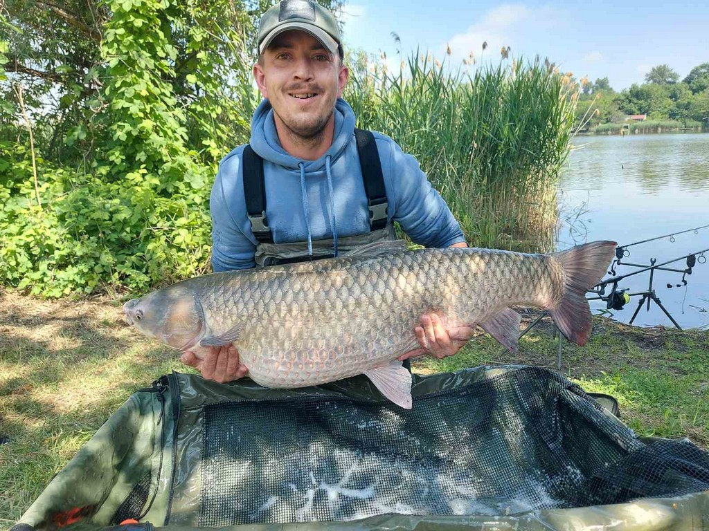 3,9 m-es 3,5 lbs bot, 0,28-as monofil zsinór, 4-es horog. Bojli csali és etetés. Hűvös idő, gyenge szél, 15 perces fárasztás partról.