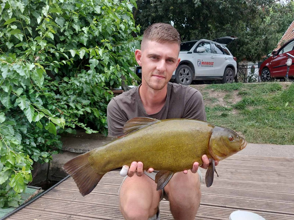 3,6 m-es 3,25 lbs bot, 0.30-as monofil zsinór, 4-es horog. Bojli csali és etetés. Hűvös idő, szélcsend, 15 perces fárasztás partról.