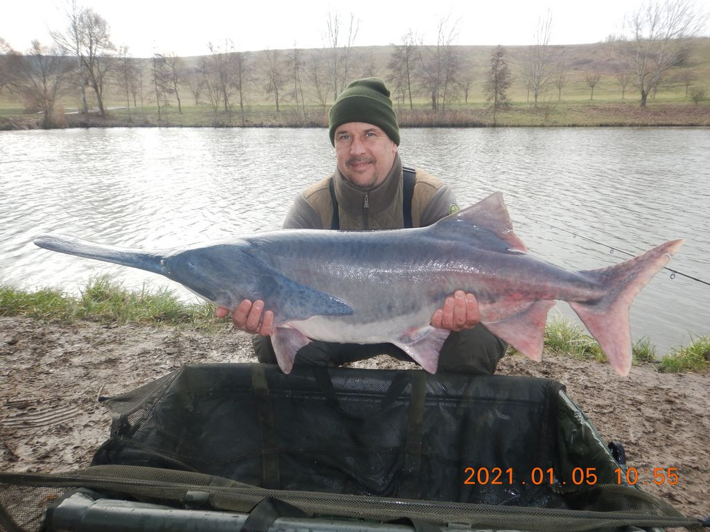 A képen a hal kifogója a jobb oldalon látható.