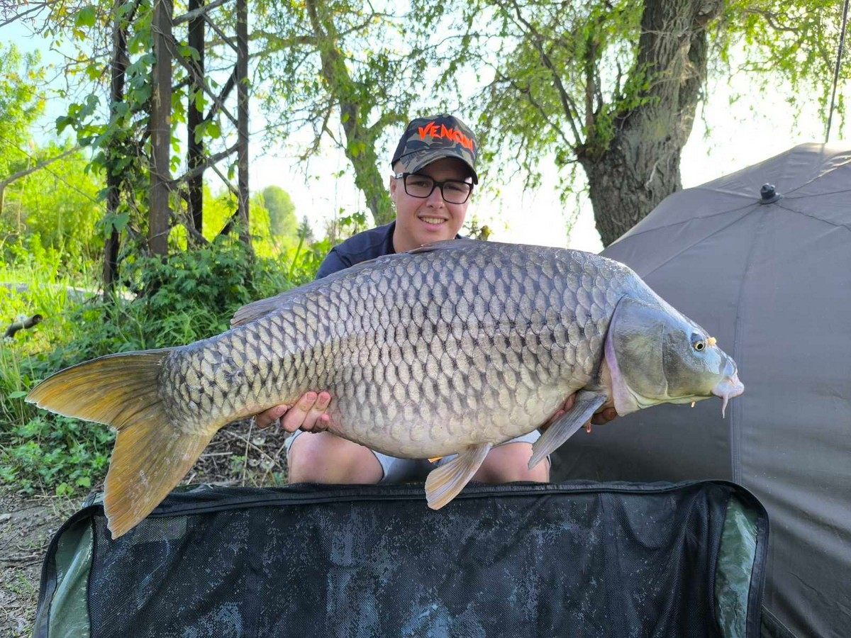 3 m-es 3,0 lbs bot, 0,35-ös monofil zsinór, 4-es horog. Bojli csali, etetés nélkül. Borult idő, szélcsend, 10 perces fárasztás partról.