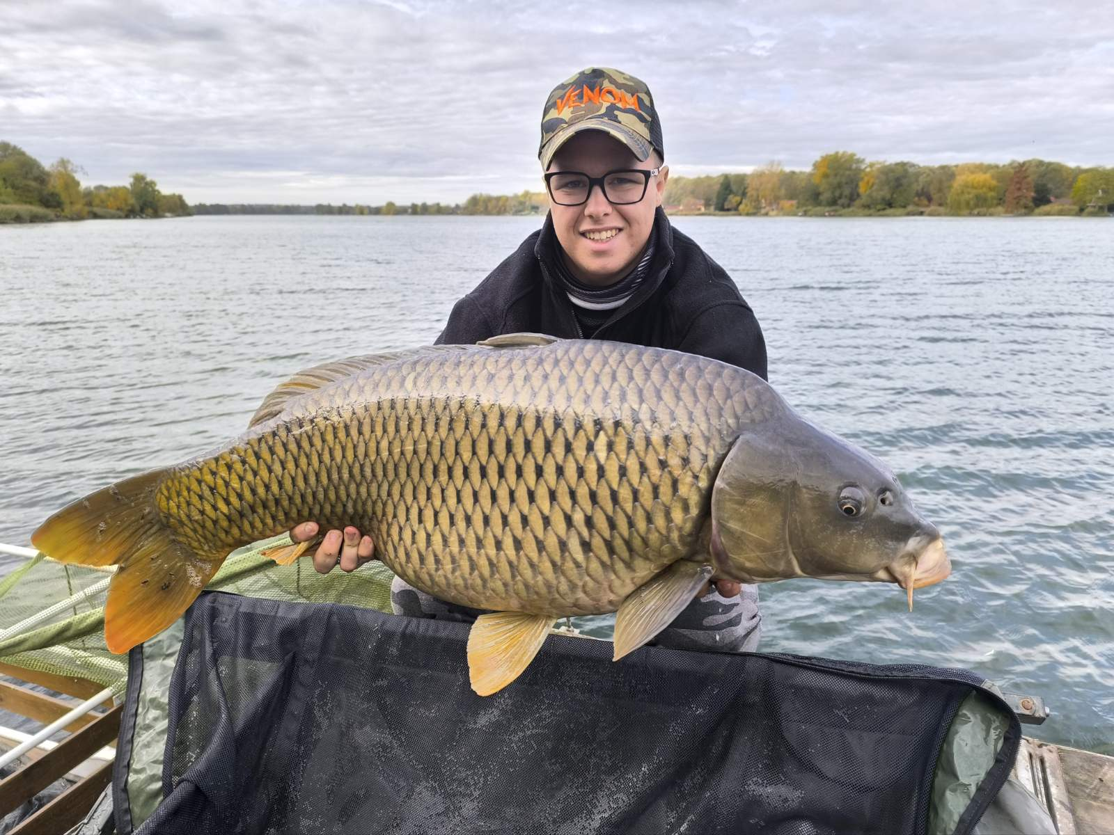 3,6 m-es 3,0 lbs bot, 0.35-ös monofil zsinór, 4-es horog. Bojli csali és etetés. Napos idő, szélcsend, 15 perces fárasztás partról.
