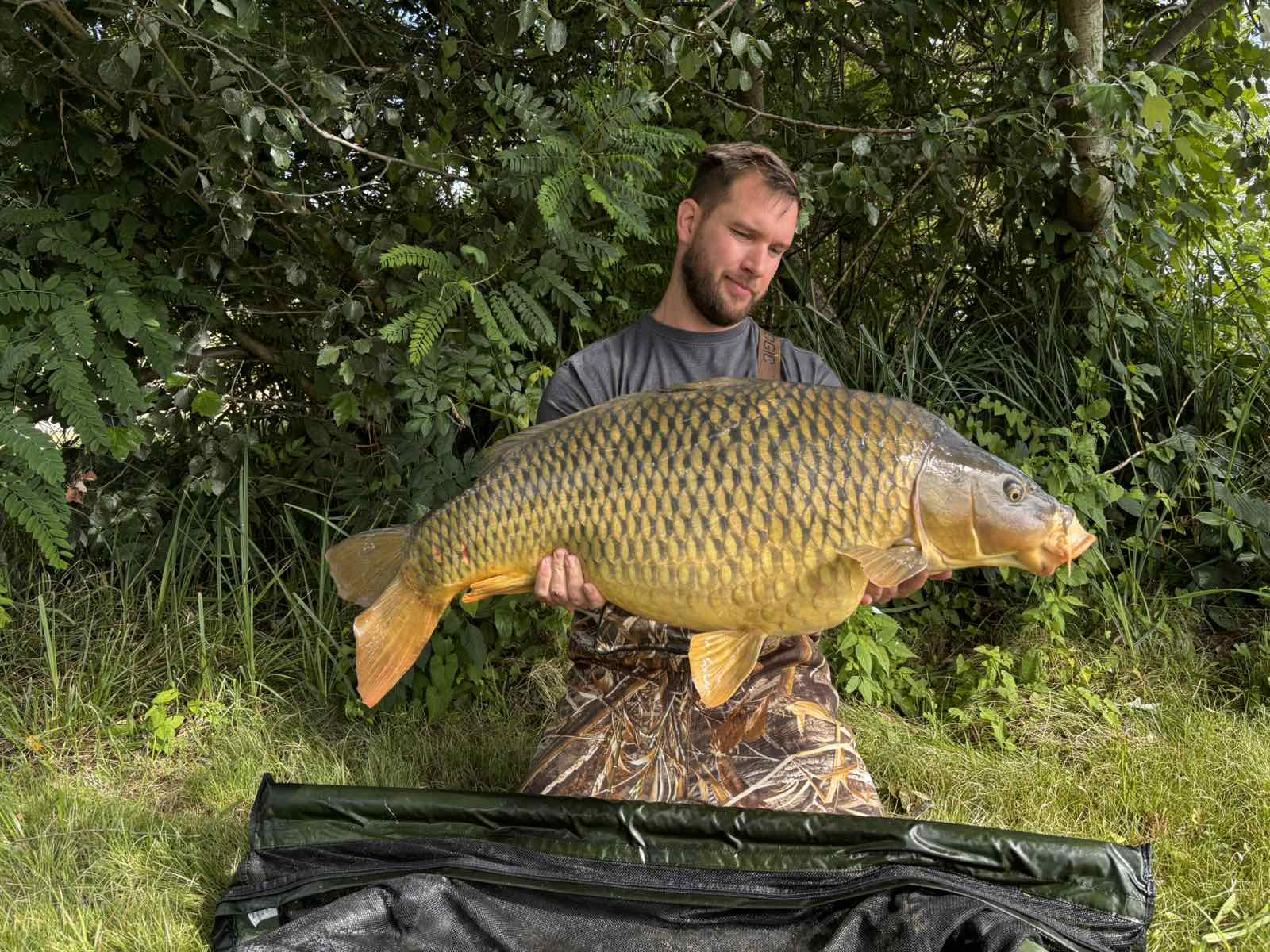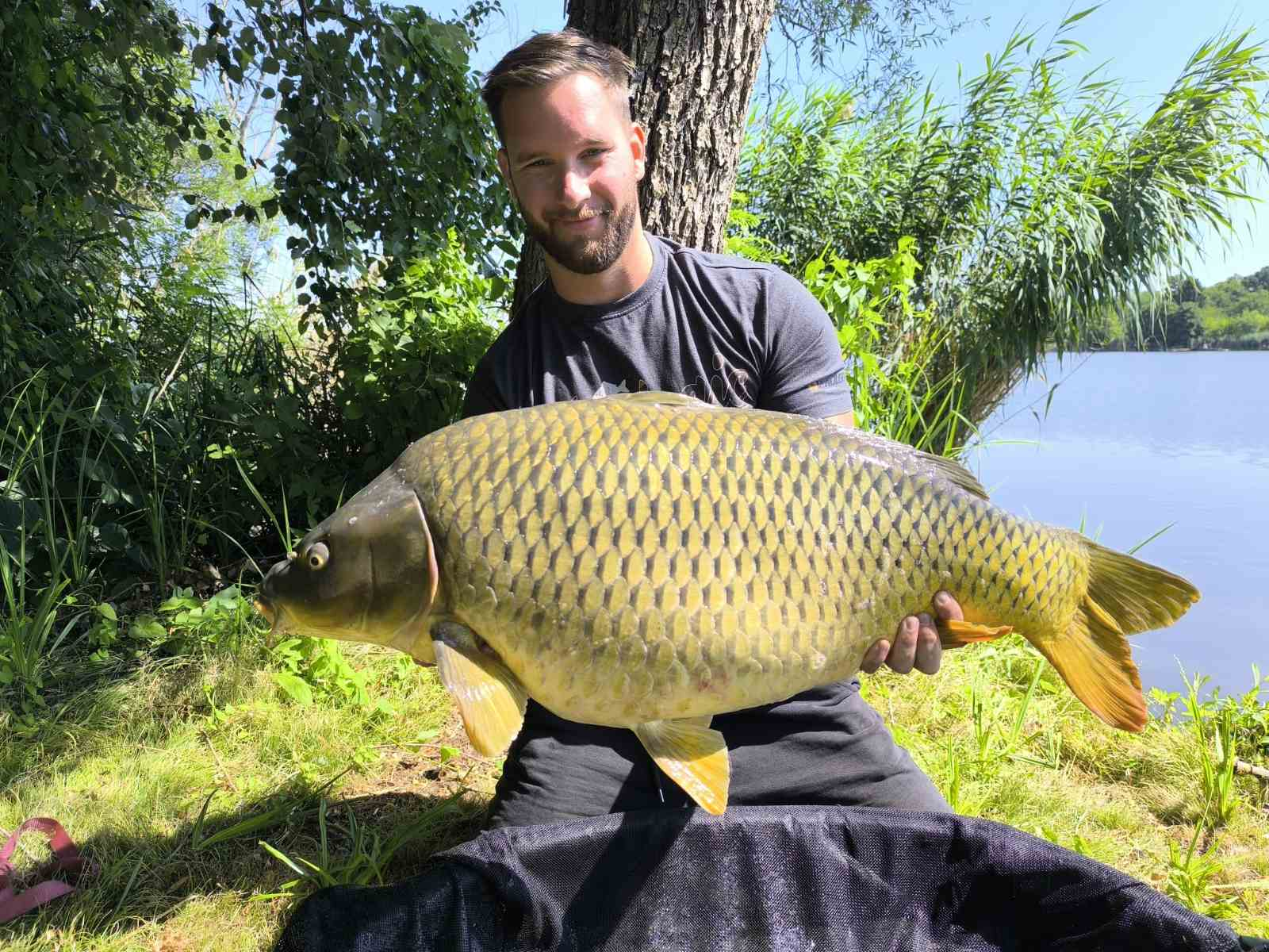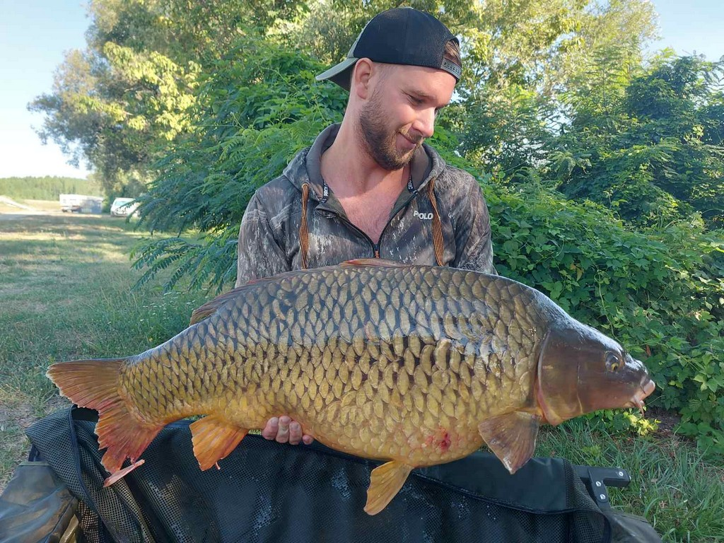 3 m-es 3,0 lbs bot, 0.30-as monofil zsinór, 4-es horog. Bojli csali és etetés. Napos idő, szélcsend, 5 perces fárasztás csónakból.