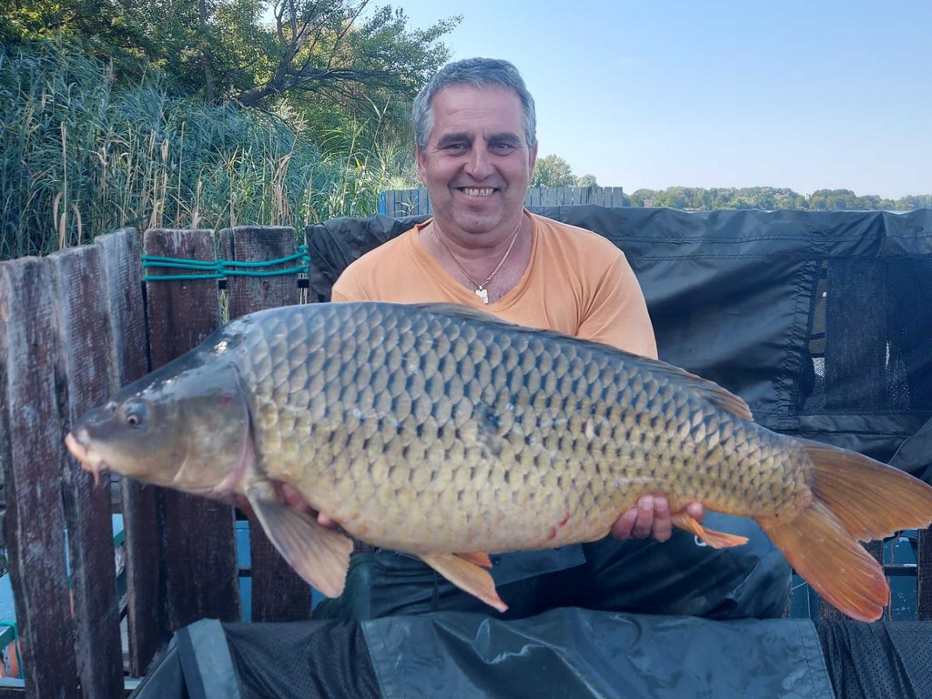 3,9 m-es 2,5 lbs bot, 0,30-as monofil zsinór, 4-es horog. Bojli csali és etetés. Borús idő, szélcsend, 20 perces fárasztás partról.
