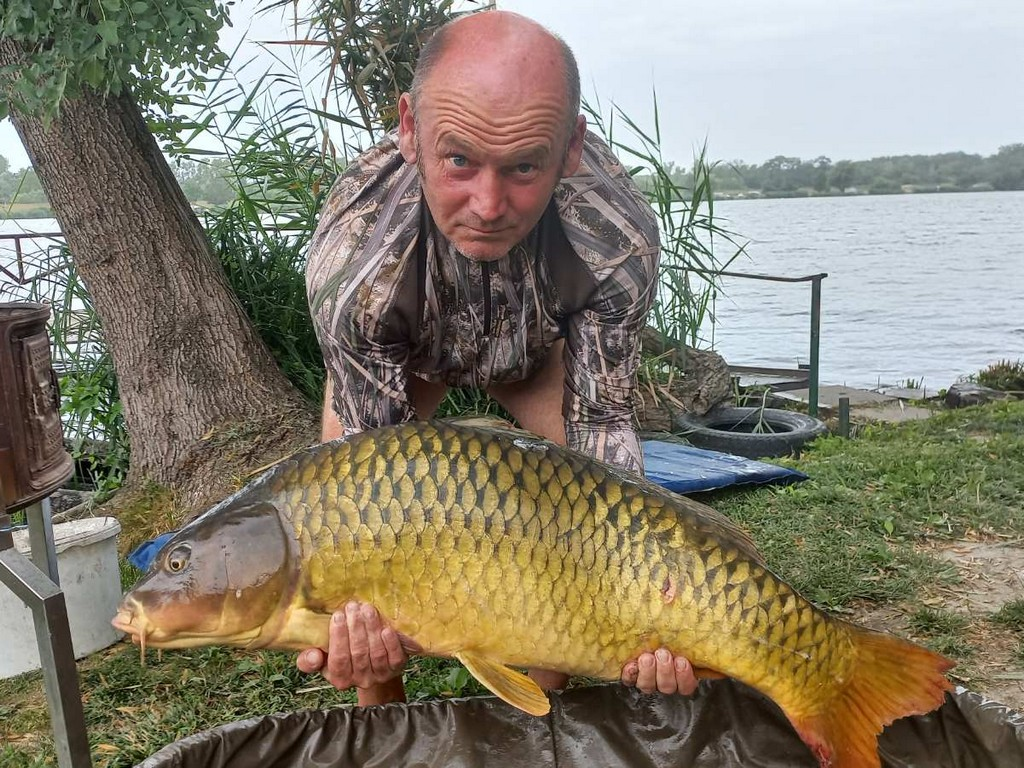 3,9 m-es 3,5 lbs bot, 0,28-as monofil zsinór, 4-es horog. Gumi tigrismogyoró csali, etetés magvakkal. Derült idő, szélcsend, kb. 10 perces fárasztás partról.