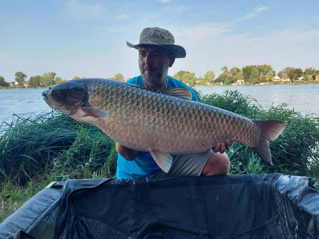 3,9 m-es 3,5 lbs bot, 0,30-as monofil zsinór, 4-es horog. Bojli csali és etetés. Hűvös idő, szélcsend, 5 perces fárasztás partról.