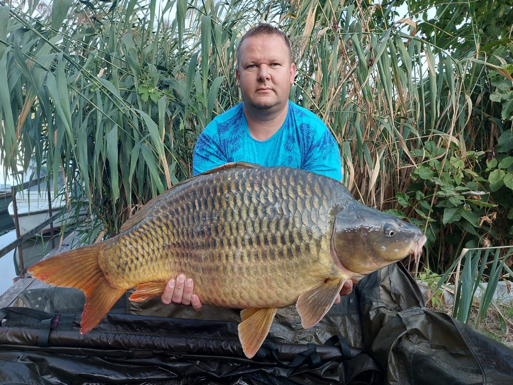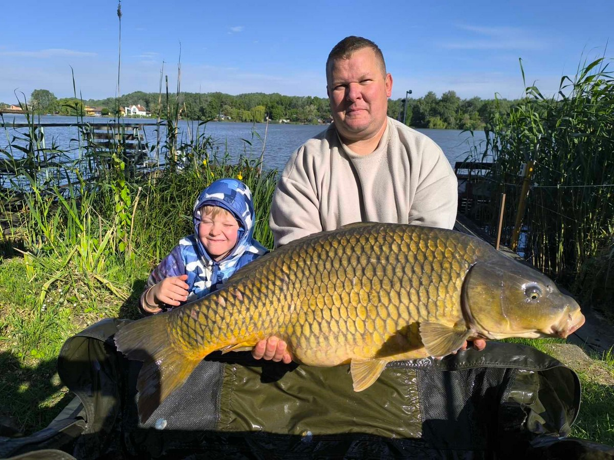 3,6 m-es 2,5 lbs bot, 0,30-as monofil zsinór, 4-es horog. Bojli csali és etetés. Derült idő, szélcsend, 20 perces fárasztás partról.