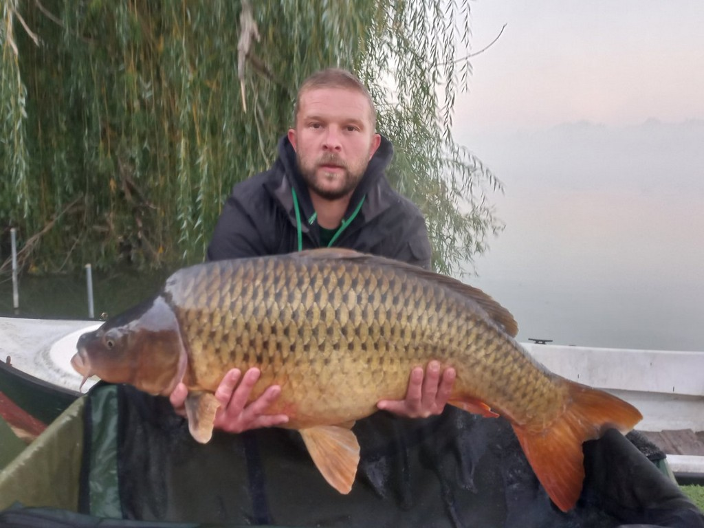 3,3 m-es 2,75 lbs bot, 0.35-ös monofil zsinór, 2-es horog. Bojli csali és etetés. Ködös idő, szélcsend, 15 perces fárasztás csónakból.