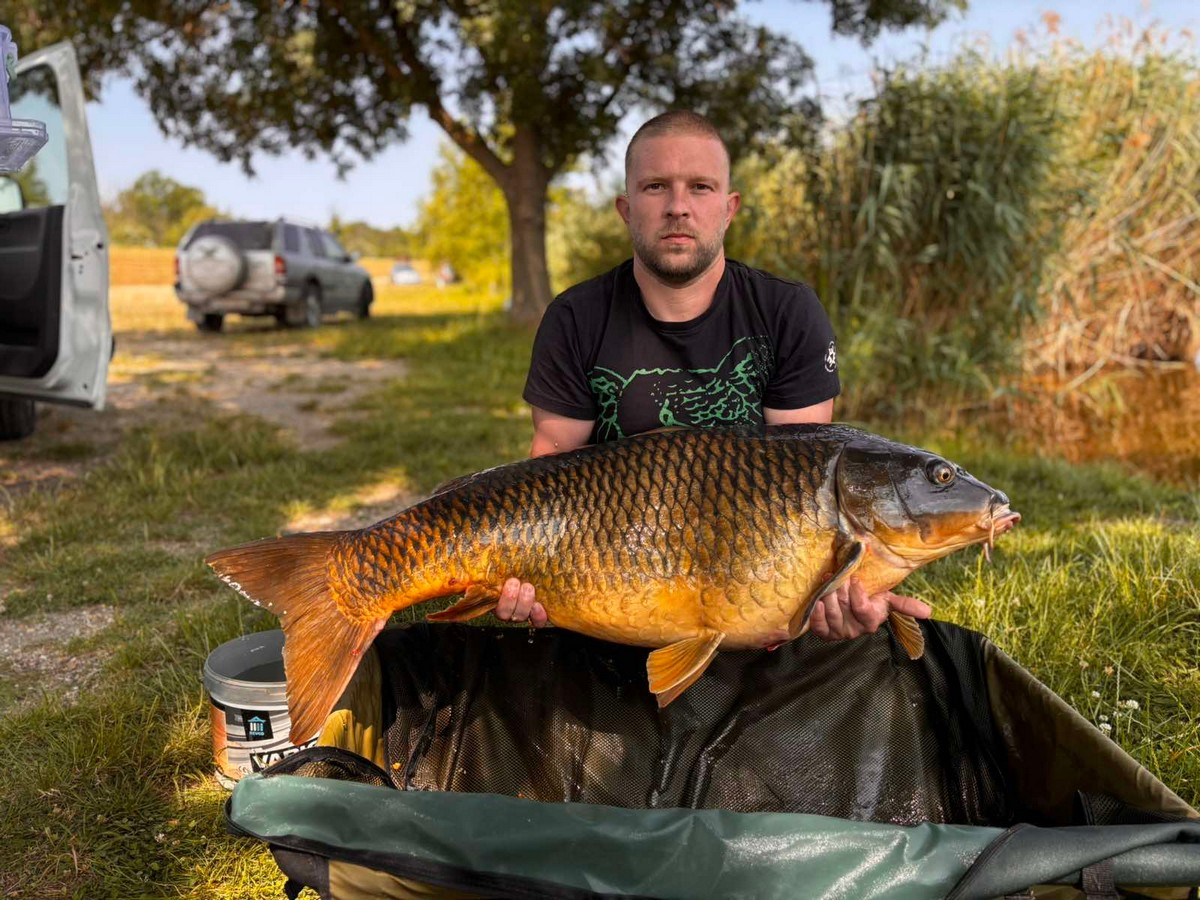 3,1 m-es 3,25 lbs bot, 0,35-ös monofil zsinór, 2-es horog. Bojli csali, etetés bojlival és magvakkal. 20 perces parti fárasztás.