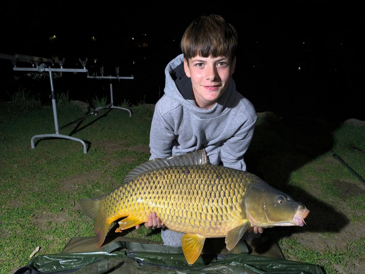 3,6 m-es 50-100 grammos feeder bot, 0.28-as monofil zsinór, 2-es horog. Bojli csali, etetés nélkül. Derült idő, szélcsend, kb. 15 perces fárasztás partról.