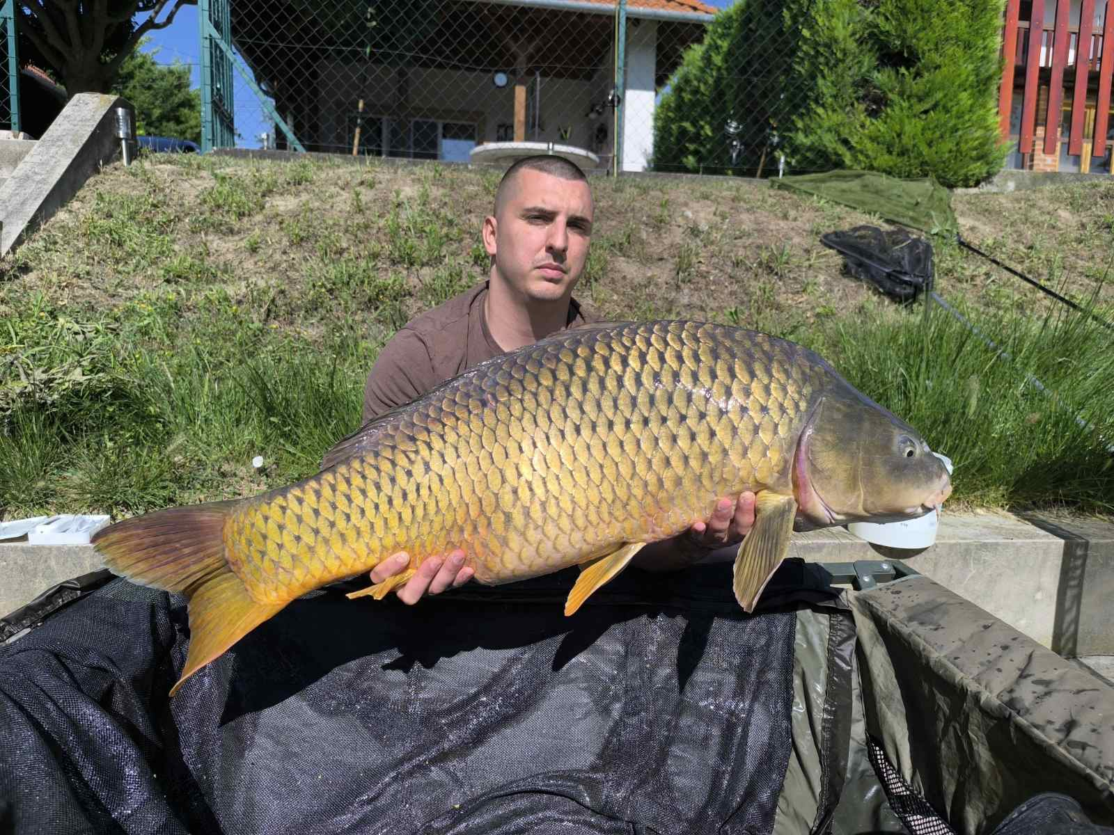 3,9 m-es 3,0 lbs bot, 0.25-ös monofil zsinór, 6-os horog. Bojli csali és etetés. Derült, szeles idő, kb. 15 perces fárasztás csónakból.