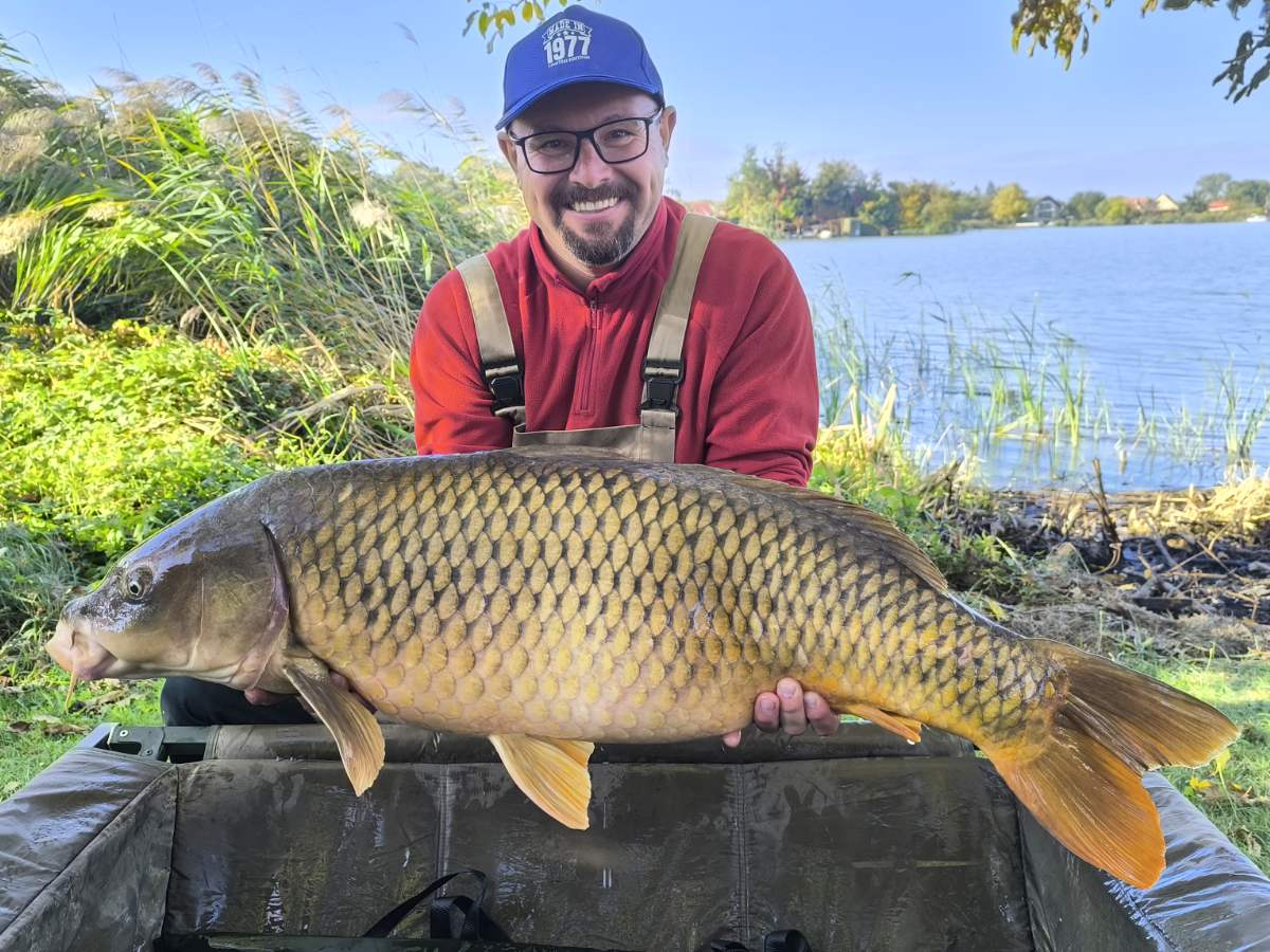 3,6 m-es 3,25 lbs bot, 0,33-as monofil zsinór, 6-os horog. Bojli csali és etetés. Derült idő, szélcsend, kb. 5 perces fárasztás partról.
