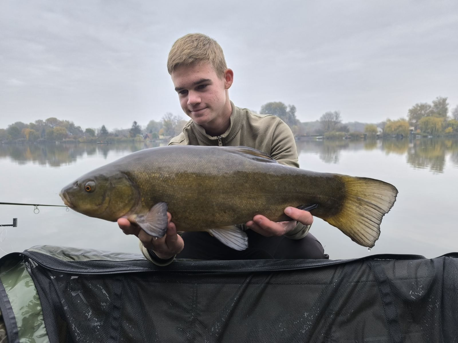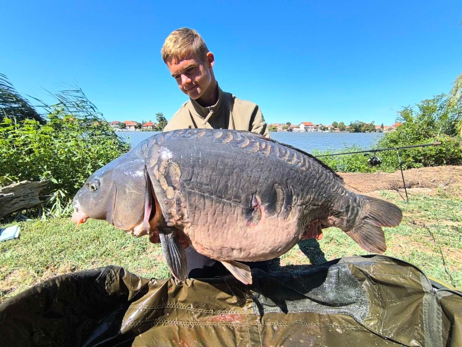 3,6 m-es 3,5 lbs bot, 0,30-as monofil zsinór, 6-os horog. Bojli csali, etetés nélkül. Gyenge északi szél, 25 perces fárasztás partról.