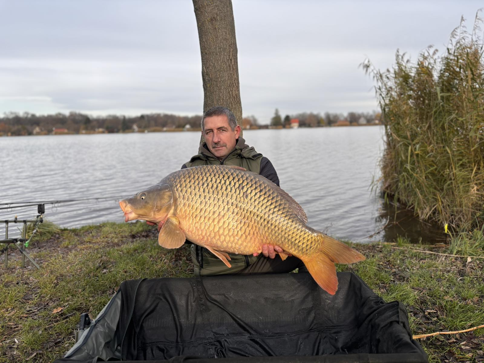 3,9 m-es 3,5 lbs bot, 0,35-ös zsinór, 4-es horog. Bojli csali és etetés. Hideg idő, parti fárasztás.