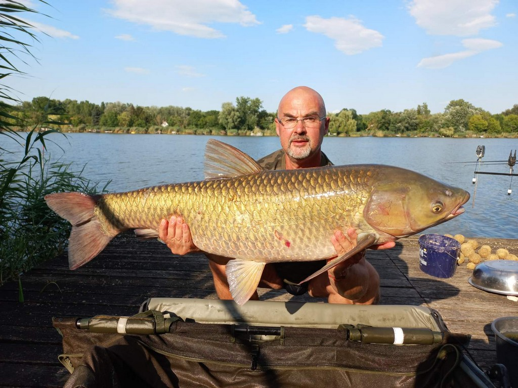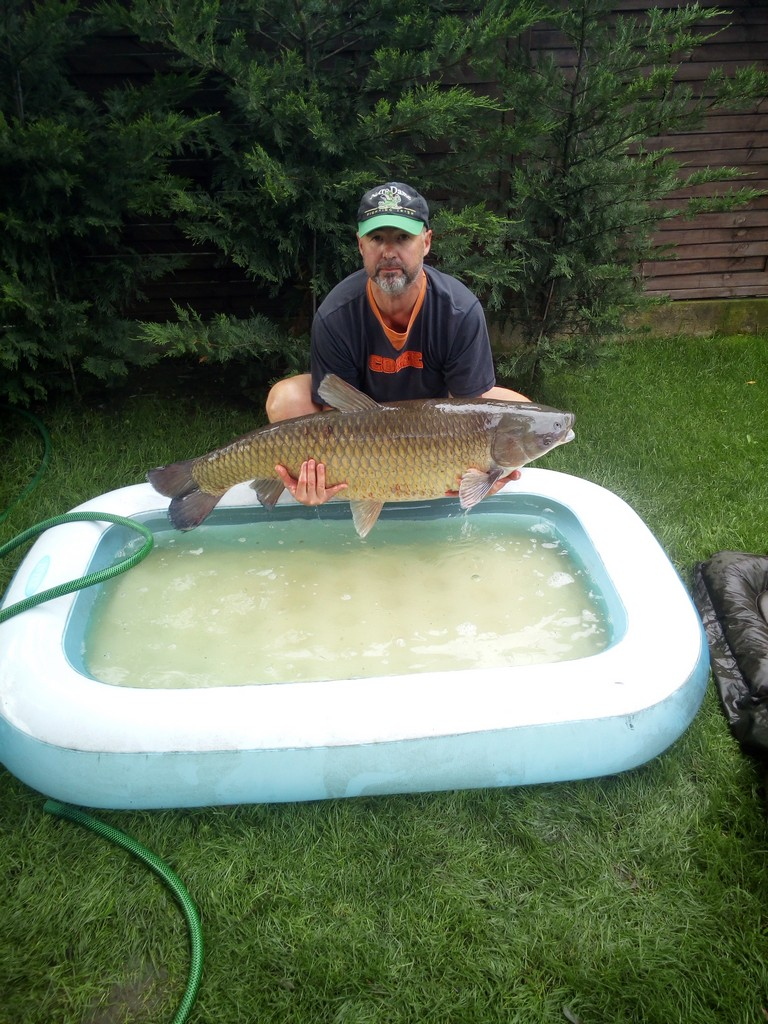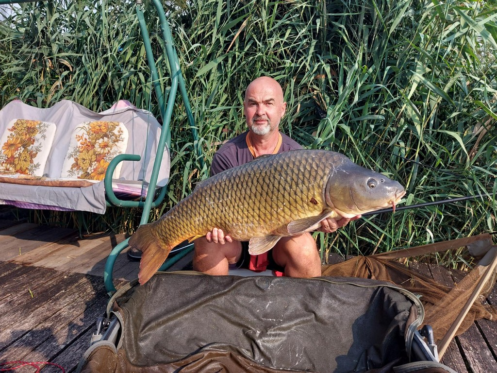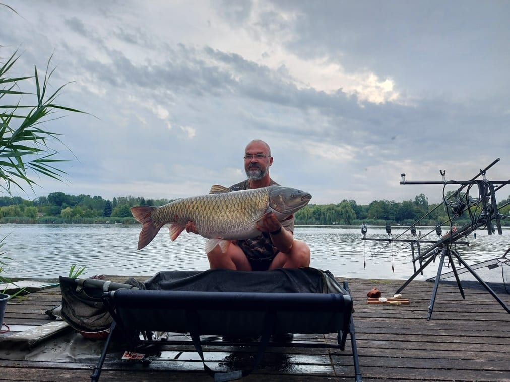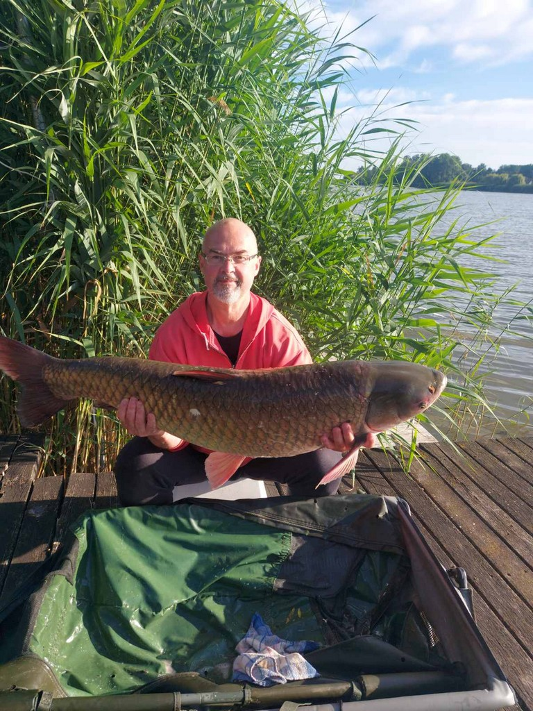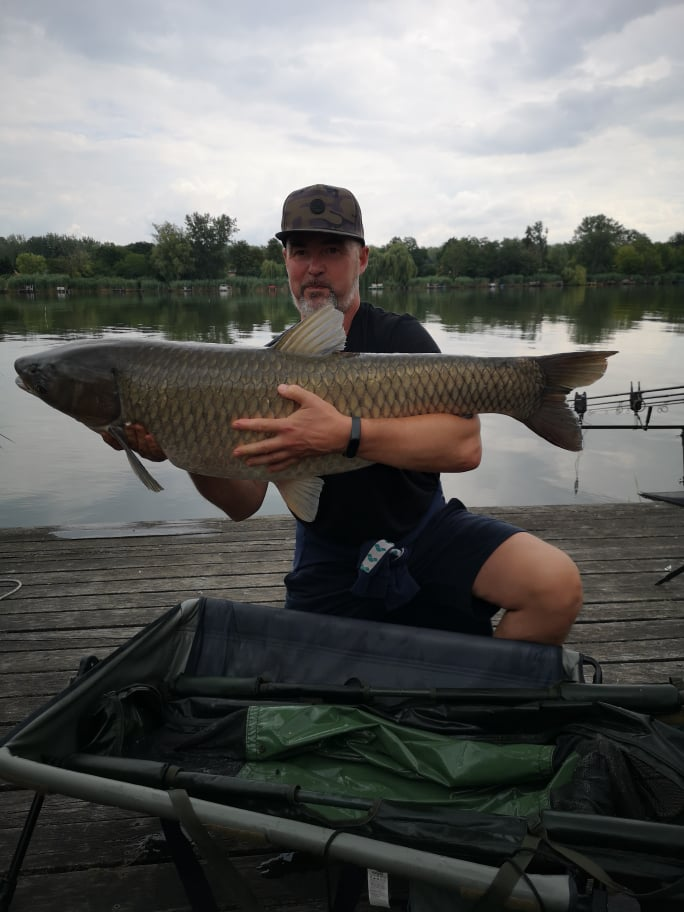 3 m-es 100 grammos bot, 0,33-as monofil zsinór, 2-es horog. Borongós, szeles idő, 15 perces fárasztás csónakból.