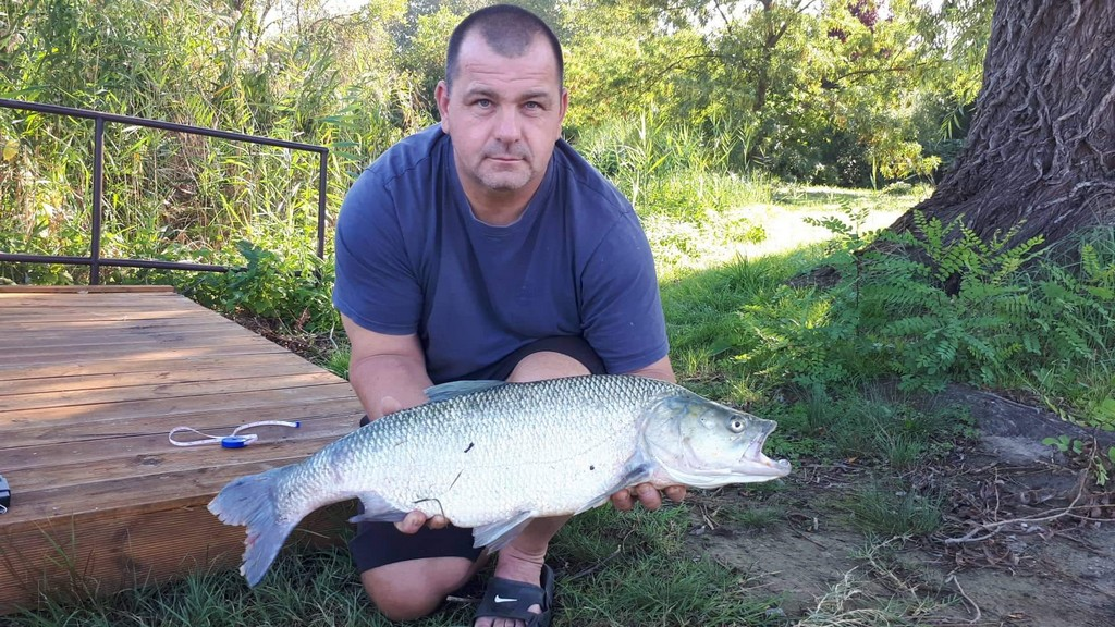 Bojlis bot, 0.30-as monofil zsinór, 4-es horog. Borult idő, szélcsend, 25 perces fárasztás.