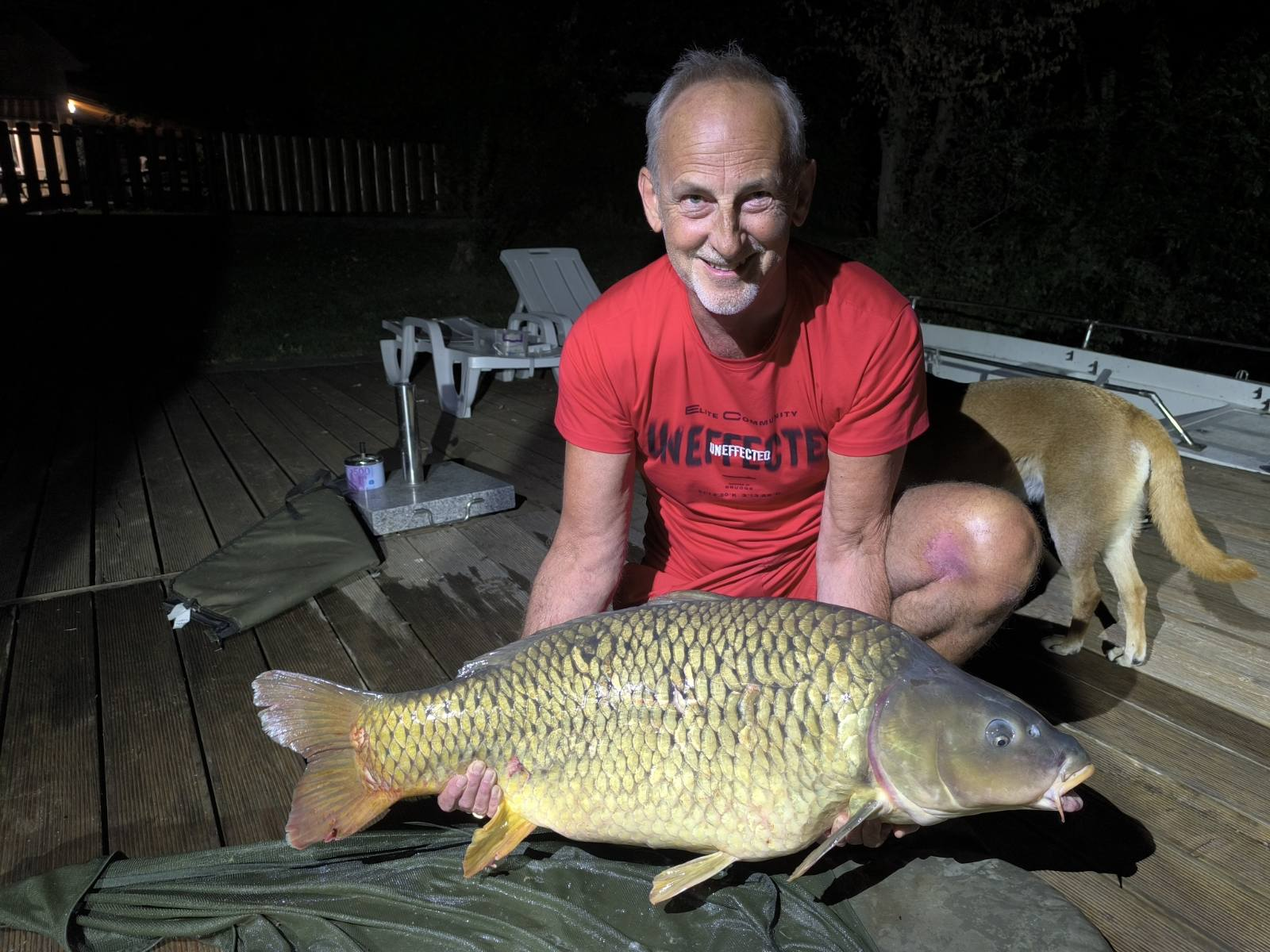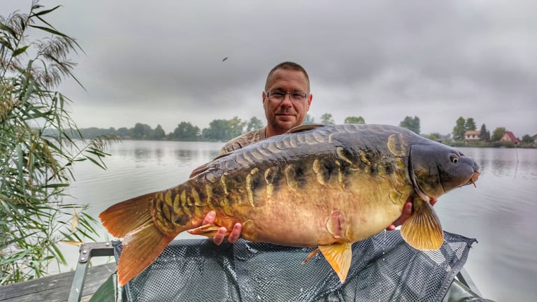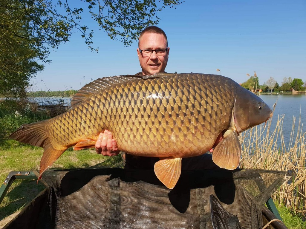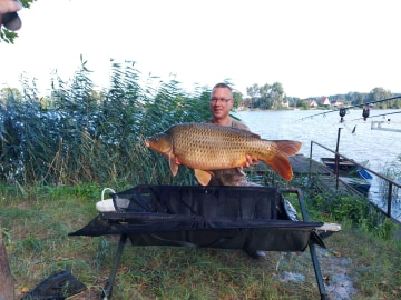 3,6 m-es 3,0 lbs bot, 0,28-as monofil zsinór, 2-es horog. Bojli csali, etetés kukoricával. Derült idő, szélcsend, kb. 15 perces fárasztás csónakból.
