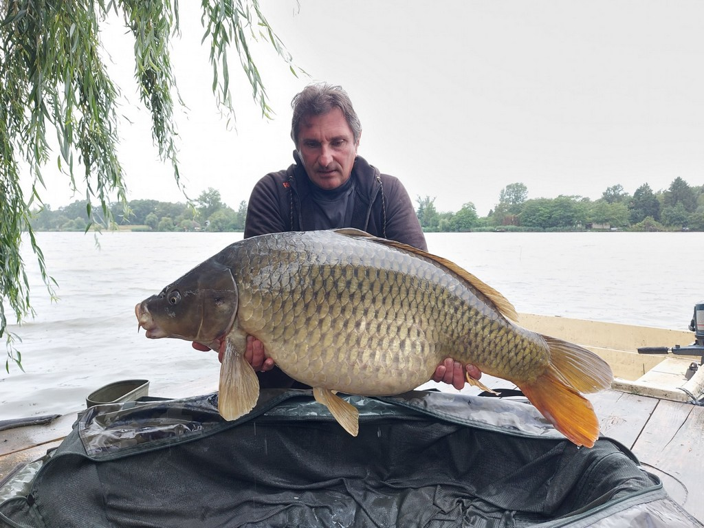 3 m-es 2,25 lbs bot, 0,35-ös monofil zsinór, 6-os horog. Bojli csali és etetés. Derült idő, szélcsend, kb. 25 perces fárasztás csónakból.
