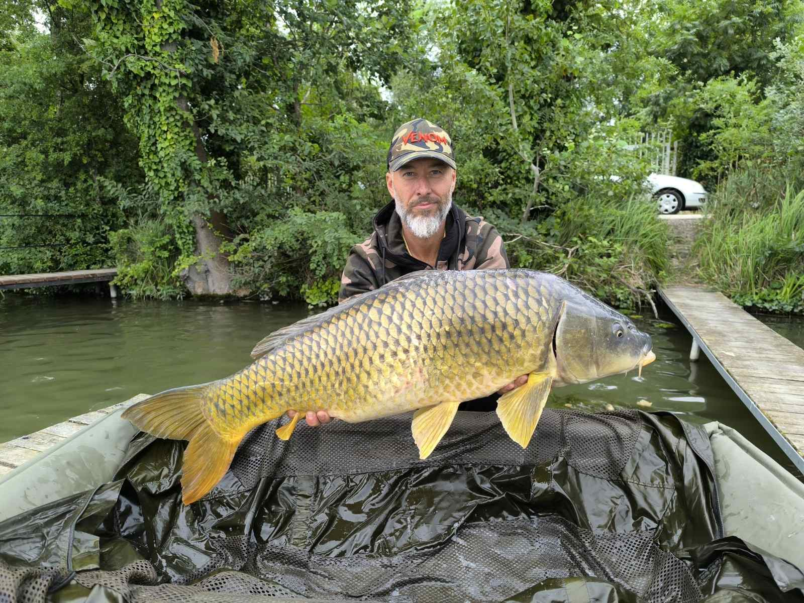3 m-es 3,0 lbs bot, 0,35-ös monofil zsinór, 2-es horog. Bojli csali és etetés. Napos idő, szélcsend, 15 perces fárasztás csónakból.