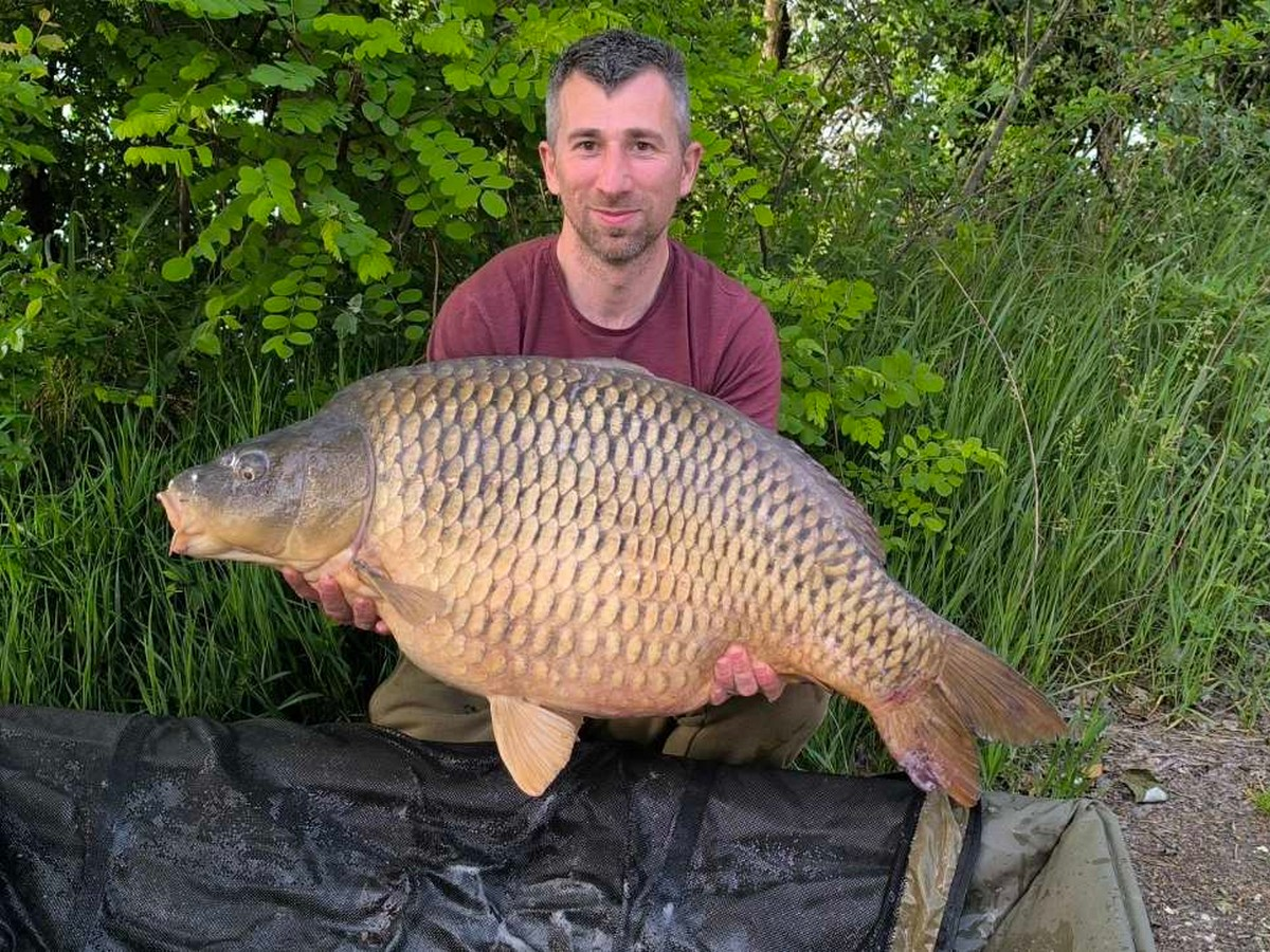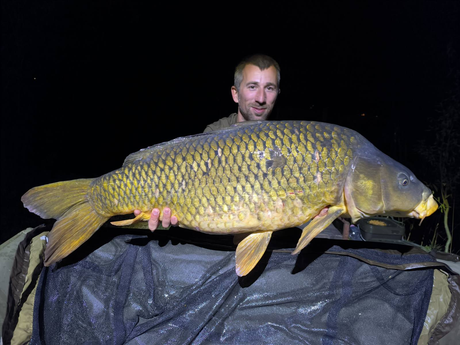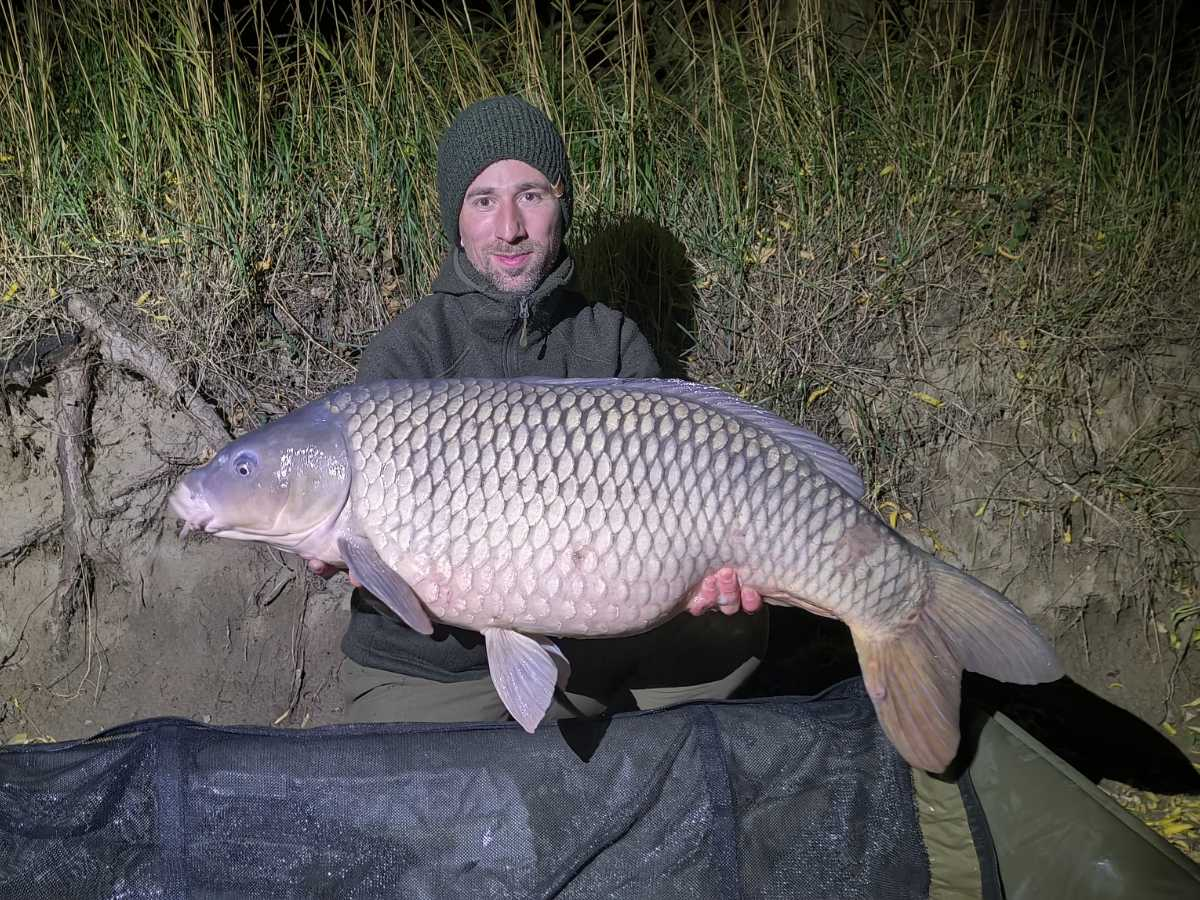 3,6 m-es 3,0 lbs bot, 0,35-ös monofil zsinór, 4-es horog. Bojli csali és etetés. Borult idő, szélcsend, kb. 20 perces fárasztás partról.