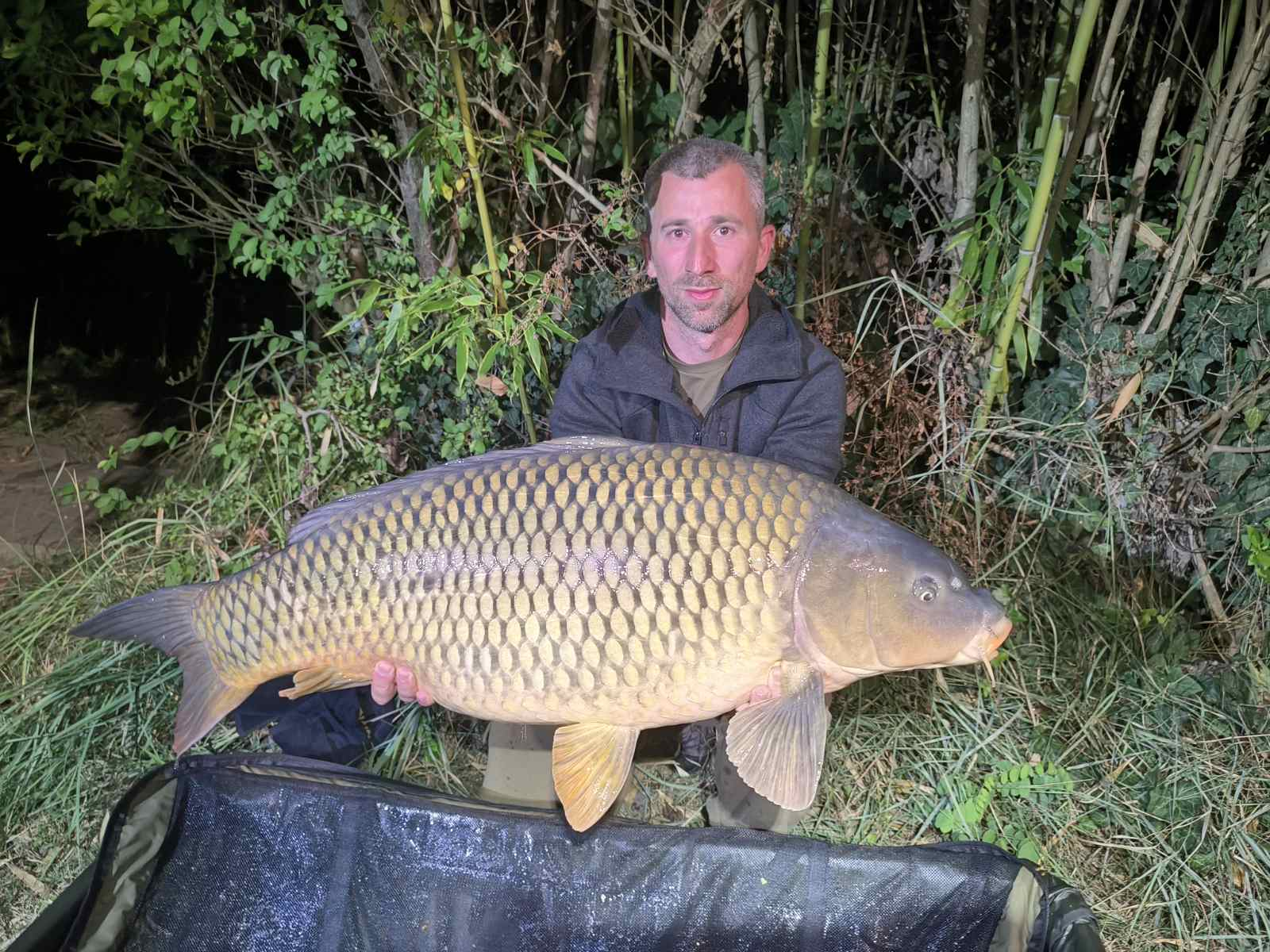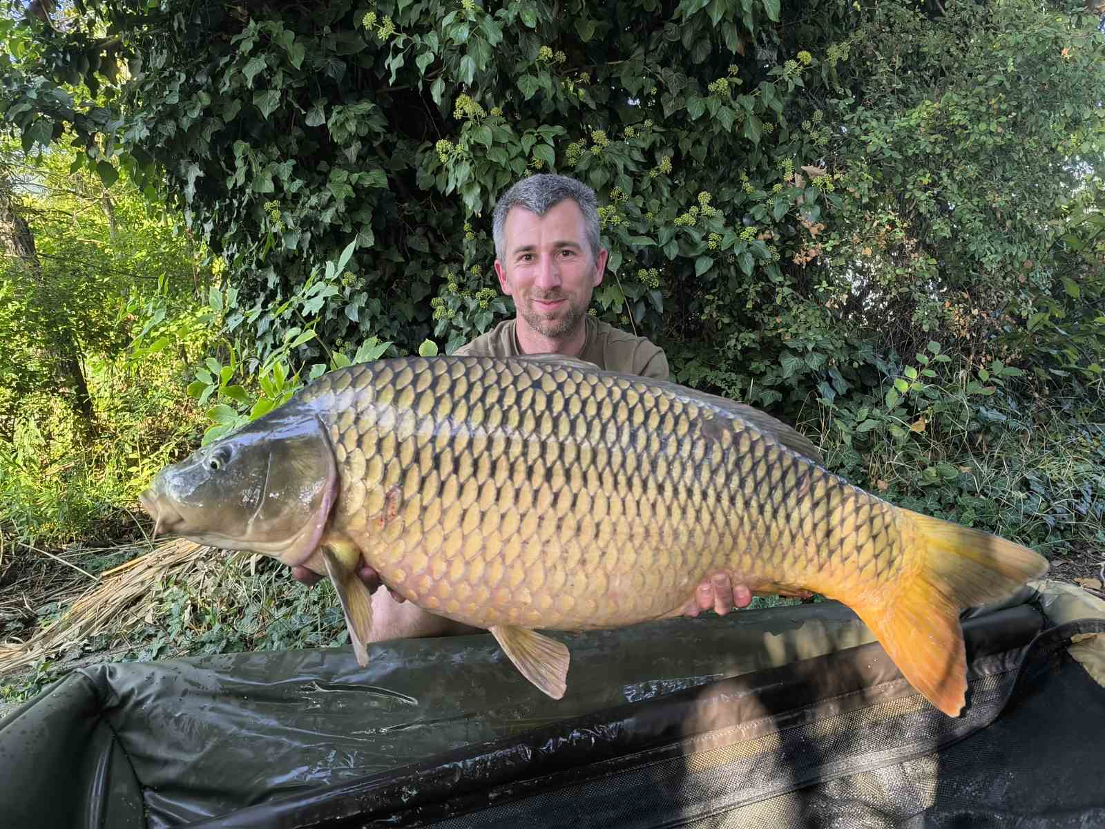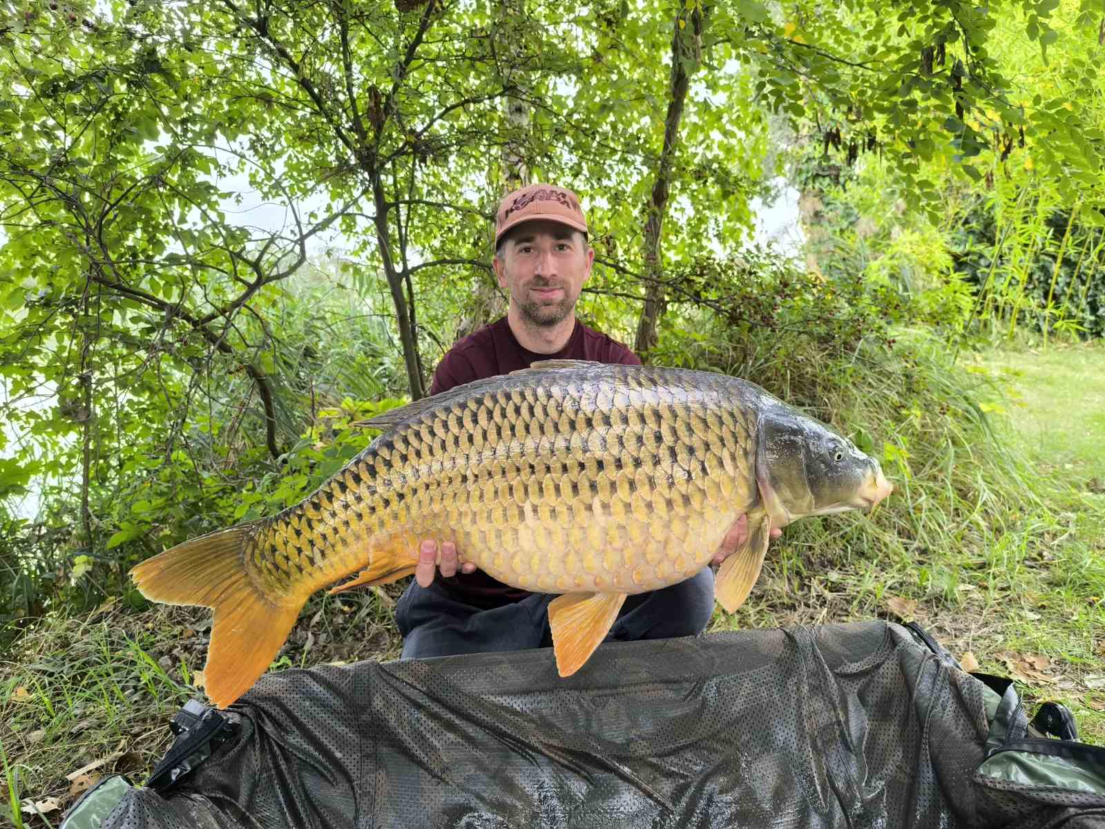 3,6 m-es 3,0 lbs bot, 0,35-ös monofil zsinór, 4-es horog. Bojli csali és etetés. Borult idő, szélcsend, kb. 20 perces fárasztás partról.