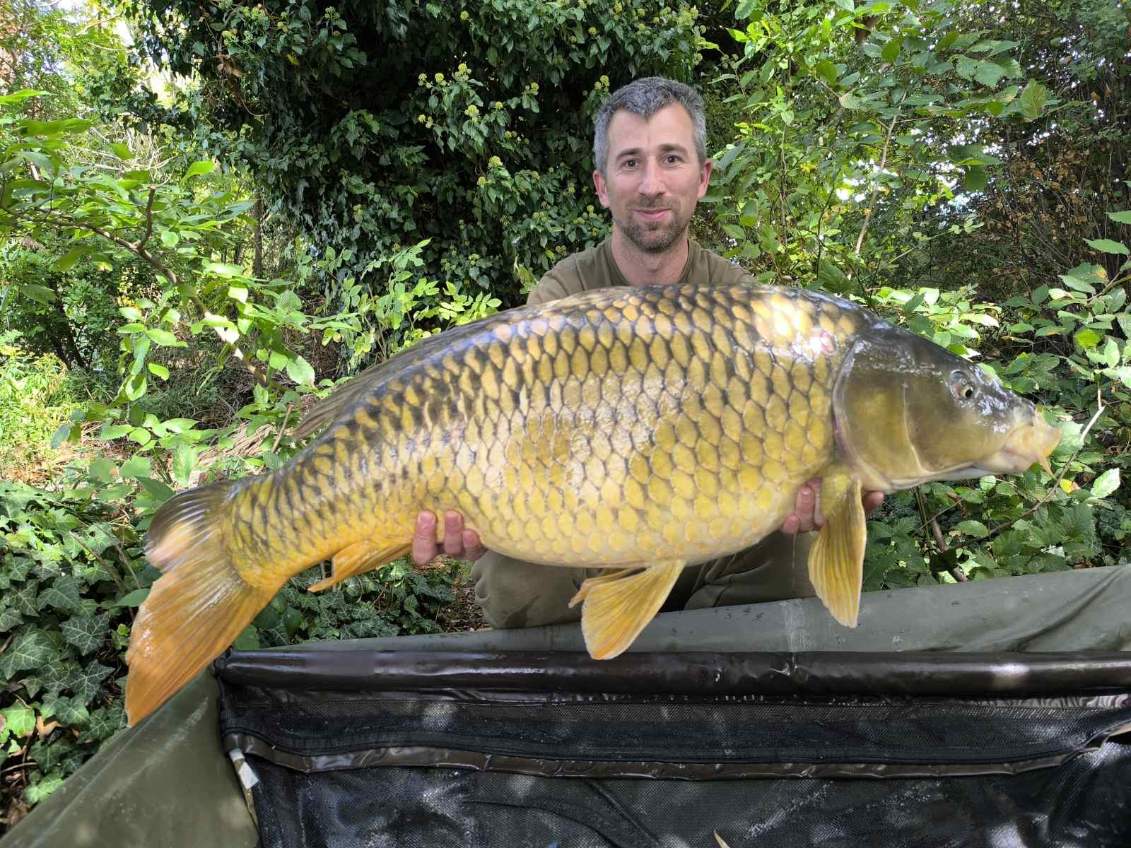 3,6 m-es 3,0 lbs bot, 0,35-ös monofil zsinór, 4-es horog. Bojli csali és etetés. Derült idő, szélcsend, 20 perces fárasztás csónakból.