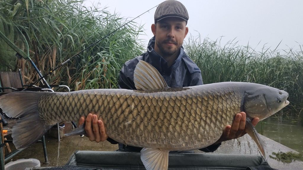 3,9 m-es 150 grammos bot, 0,22-es monofil zsinór, 4-es horog. Kukorica csali, etetés bojlival. Derűs idő, szélcsend, 15 perces fárasztás csónakból.