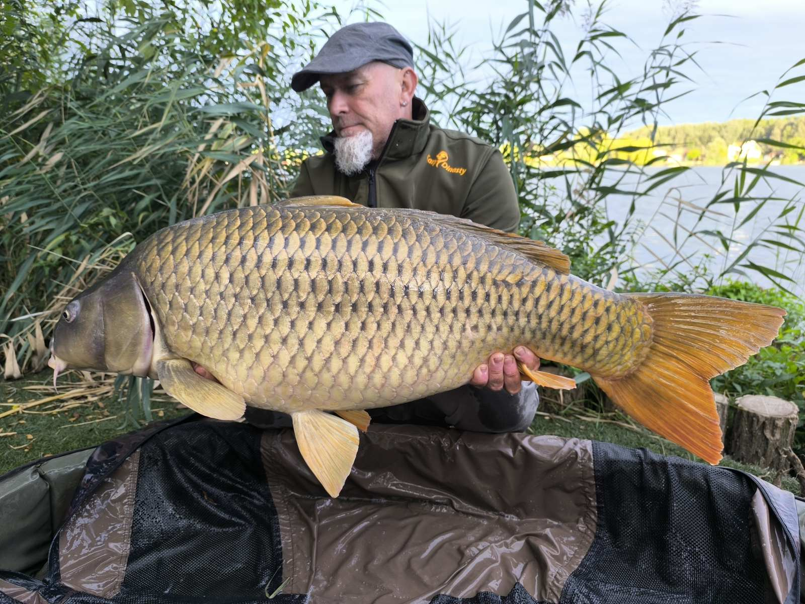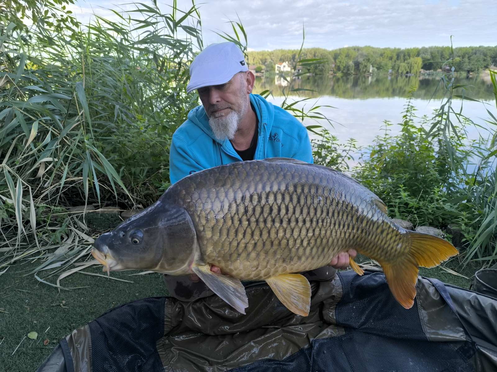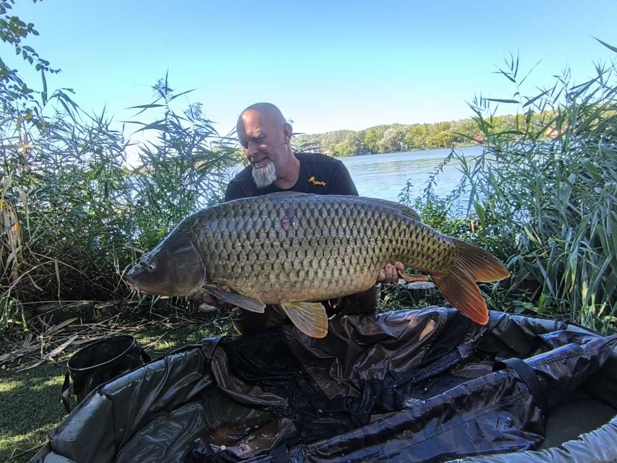 3 m-es 2,5 lbs bot, 0,35-ös monofil zsinór, 4-es horog. Bojli csali és etetés. Gyenge szél, 10 perces fárasztás csónakból.