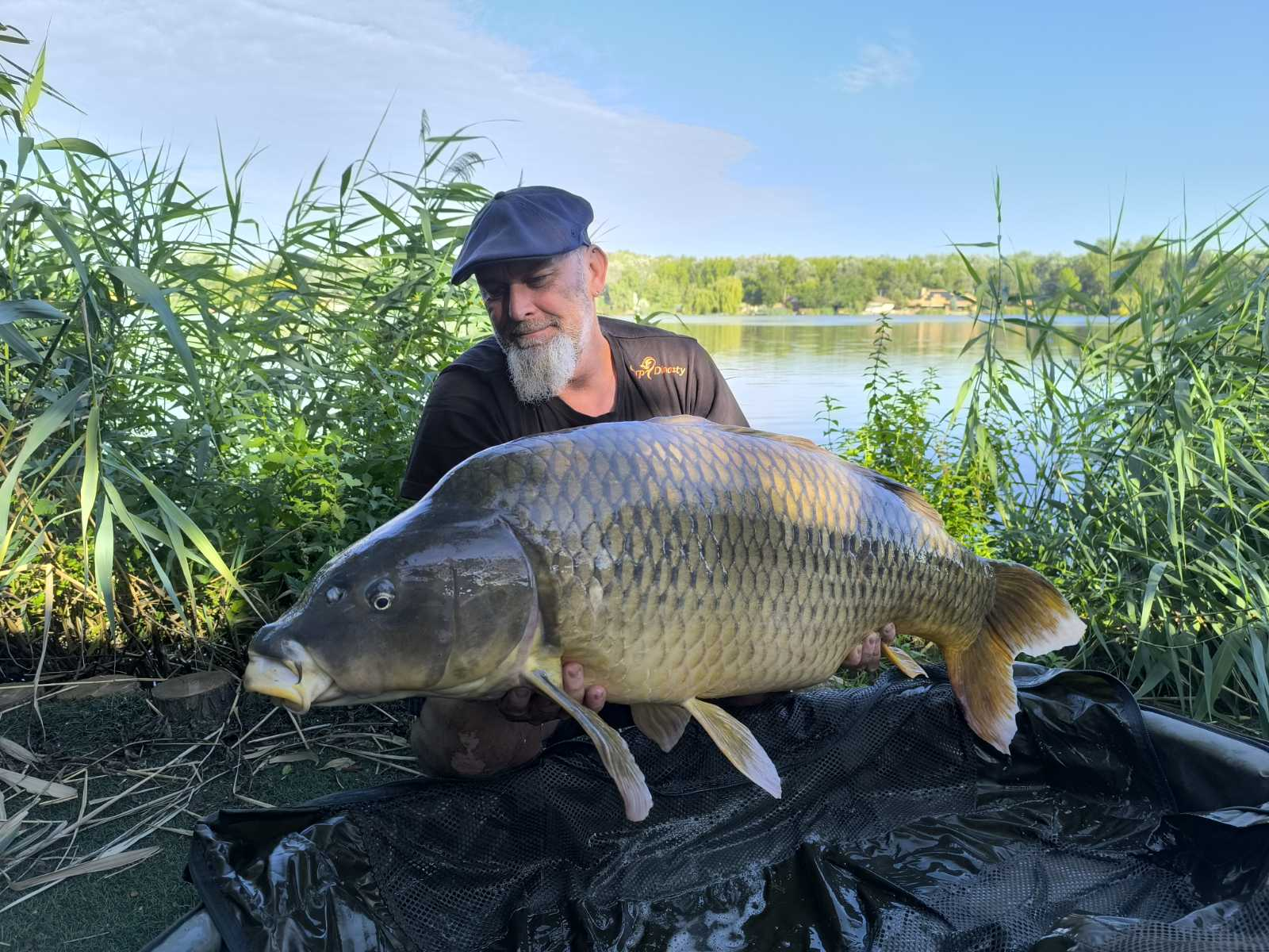 3 m-es 2,5 lbs bot, 0,35-ös monofil zsinór, 4-es horog. Bojli csali és etetés. Derült idő, szélcsend, 10 perces fárasztás csónakból.