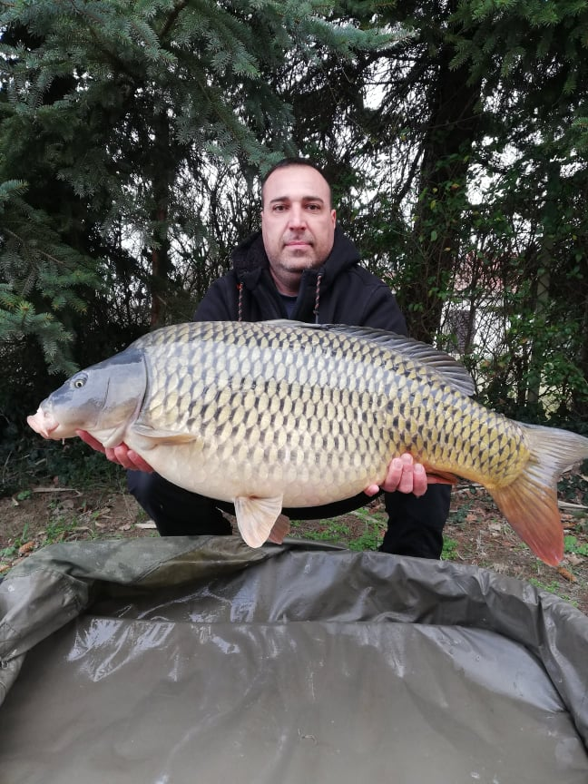 3 m-es 2,5 lbs bot, 0,30-as monofil zsinór, 4-es horog. Bojli csali és etetés. Hideg, szeles idő, 20 perces fárasztás csónakból.