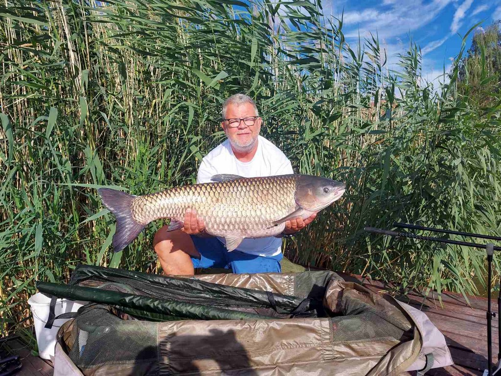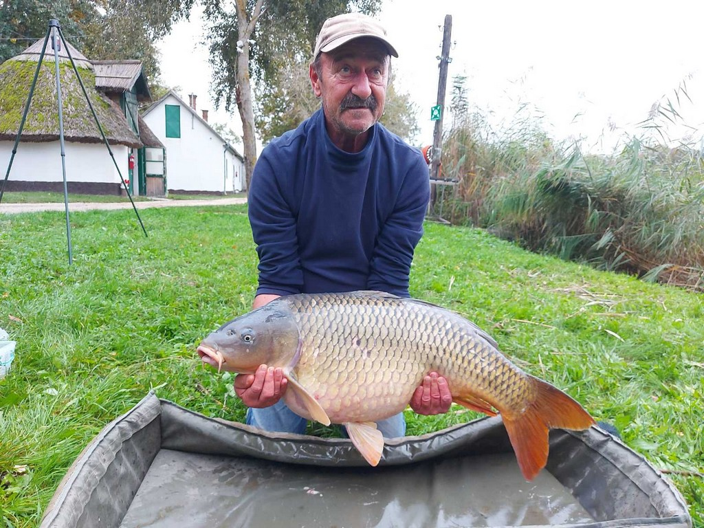 3 m-es 2,5 lbs bot, 0,30-as monofil zsinór, 4-es horog. Bojli csali és etetés. Derült, szeles idő, kb. 30 perces fárasztás csónakból.