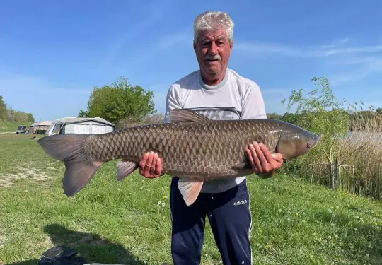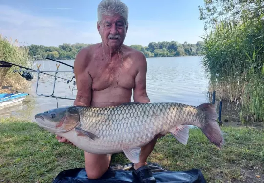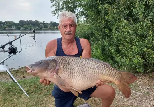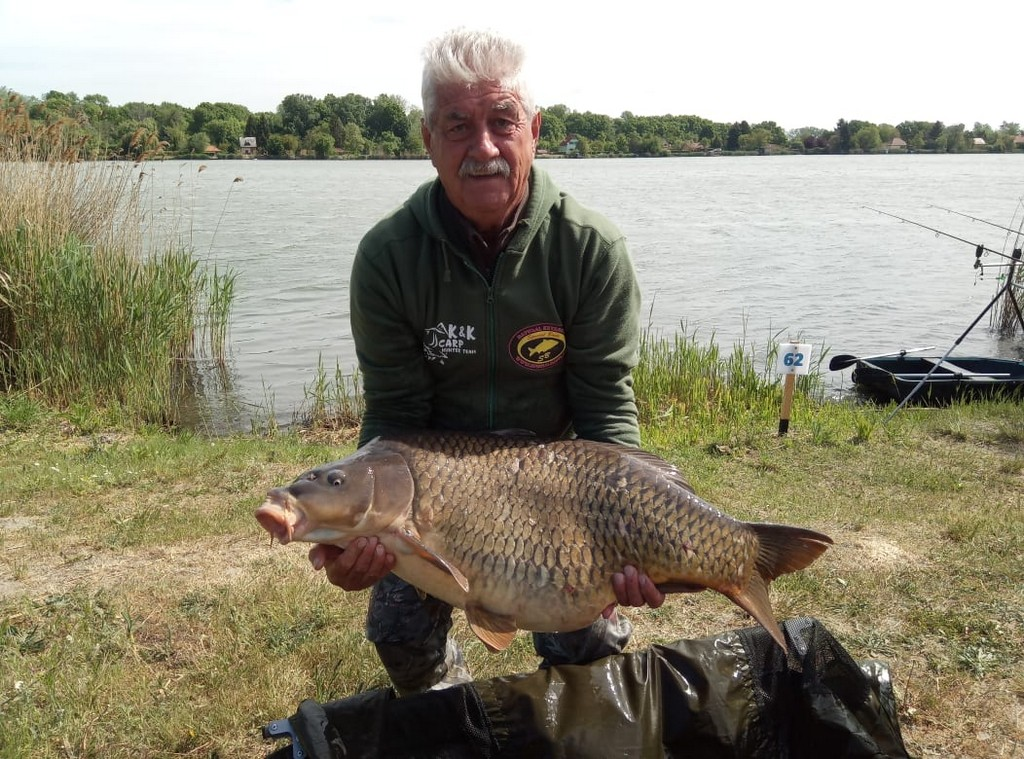 3,9 m-es bot, 0,18-as fonott zsinór, 2-es horog. Kukorica csali és etetés. Esős idő, gyenge szél, 15-20 perces fárasztás csónakból.