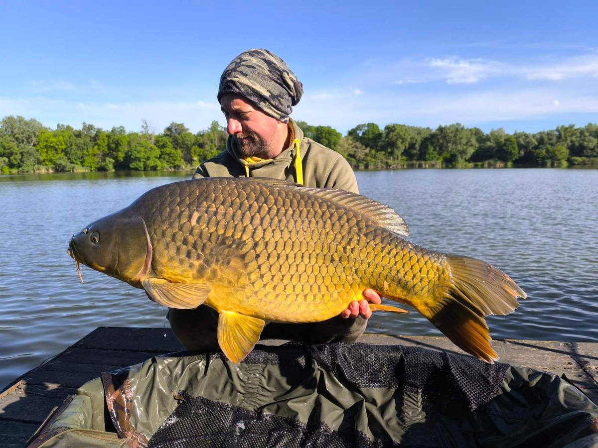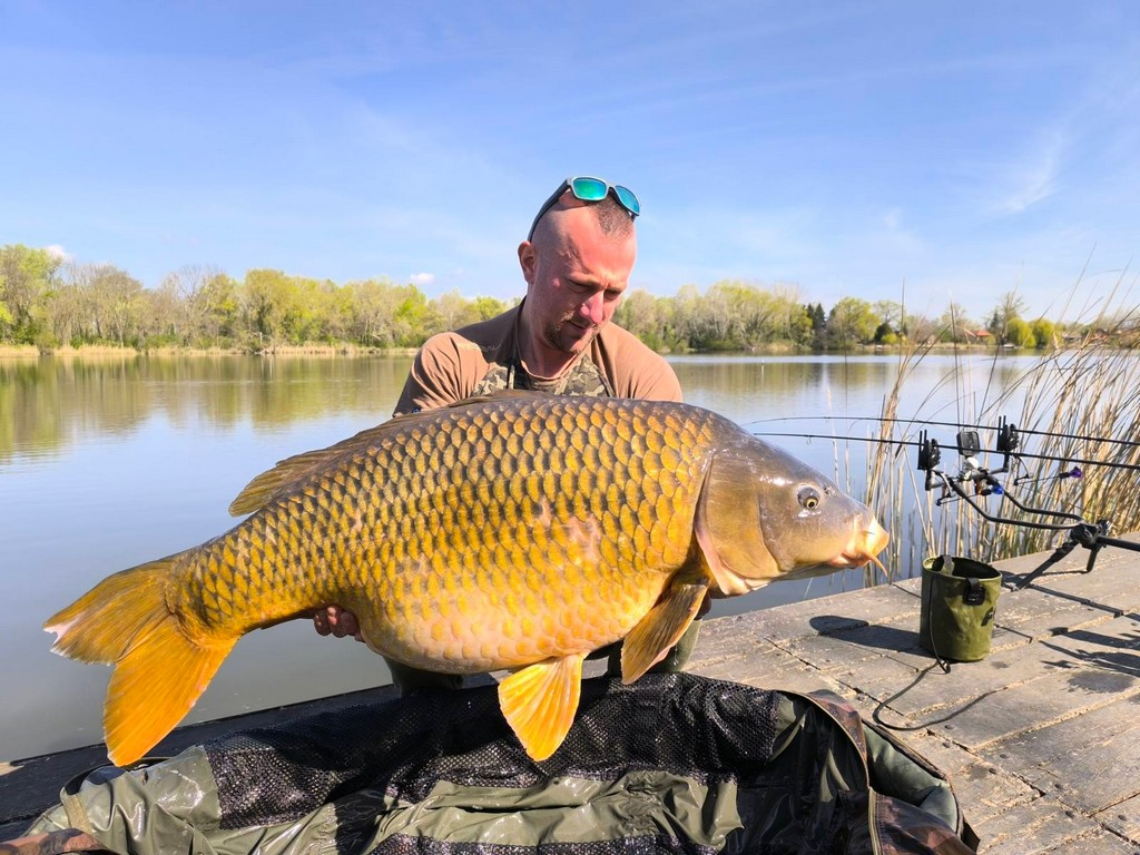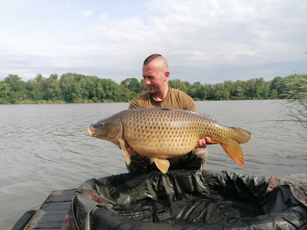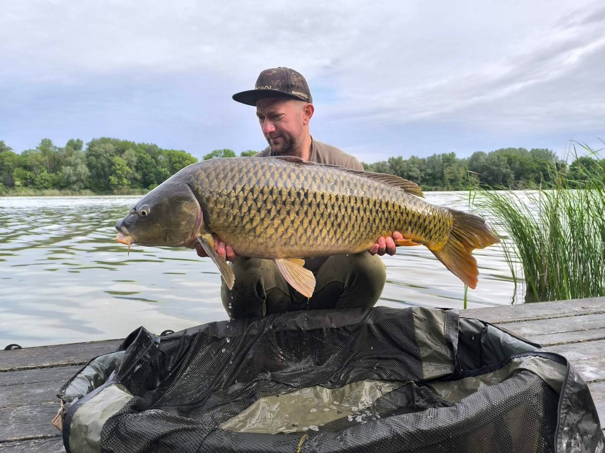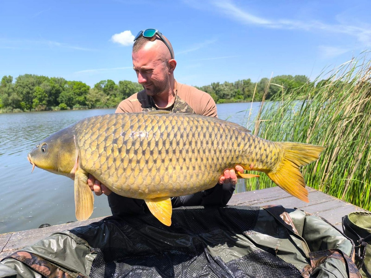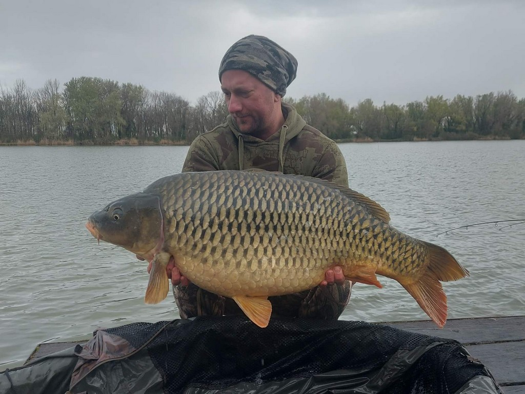 3 m-es 20-50 grammos bot, 0.35-ös monofil zsinór, 4-es horog. Bojli csali és etetés. Gyenge szél, 10 perces fárasztás csónakból.