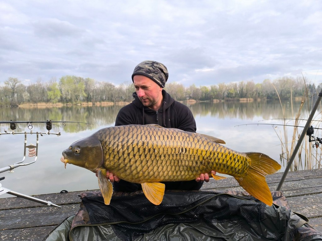 2,7 m-es 15-40 grammos bot, 0,35-ös monofil zsinór, 6-os horog. Bojli csali és etetés. Derült idő, 10 perces fárasztás csónakból.
